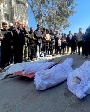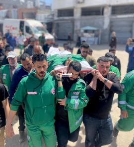 تشييع شهداء القصف الإسرائيلي الذي طال مركبة شرطة مدنية في مواصي خان يونس جنوبي قطاع غزة