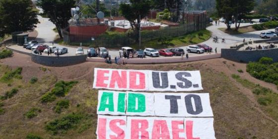"أوقفوا المساعدات الأمريكية لإسرائيل"..نشطاء يرفعون لافتة على تلال سان فرانسيسكو