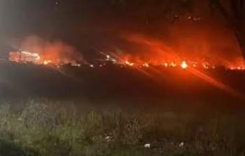 مستوطنون يضرمون النار في أراضٍ زراعية شمال قرية اللبن الشرقية