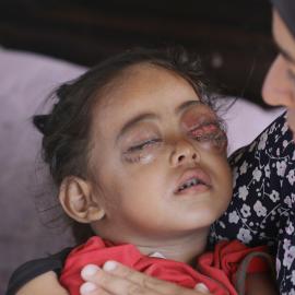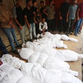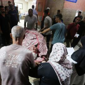 وداع وتشييع عدد من الشهداء من عائلة العديني في مستشفى شهداء الأقصى بدير البلح وسط قطاع غزة 30 سبتمبر 2024