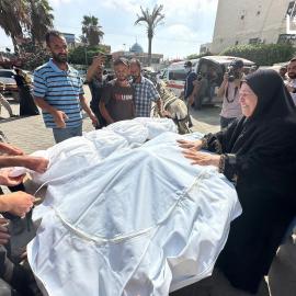 تشييع شهداء القصف الإسرائيلي على محيط مفترق الزقزوق بحي الأمل شمال غربي خان يونس جنوبي قطاع غزة 22 ابريل 2026