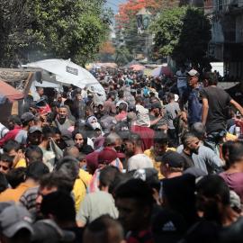 الأسواق في دير البلح وسط قطاع غزة مع تكدس مئات آلاف النازحين في المدينة بفعل الحرب الإسرائيلية 22 يونيو 2024
