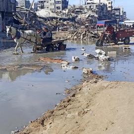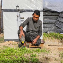 النازح محمد ناصر (44 عامًا) يتشبث بأرضه عبر الزراعة حول خيمته بعد أن فقد منزله وساقه خلال حرب الإبادة على قطاع غزة 05 يناير 2026