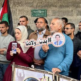 وقفة تضامنيّة لأهالي الأسرى أمام مقر الصليب الأحمر في غزة للمطالبة بالإفراج عن أبنائهم 08 ديسمبر 2025
