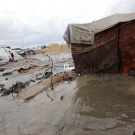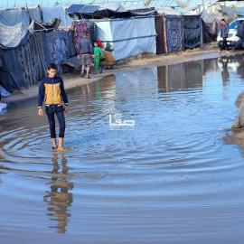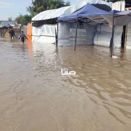 الطرقات تمتلئ بمياه الأمطار في ظل تعطل البنية التحتية وتدمير شبكات تصريف الأمطار في خان يونس 17 نوفمبر 2025