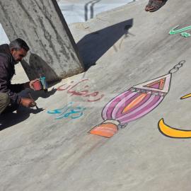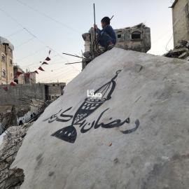 محاولات لإحياء الطقوس رغم الظروف الصعبة.. رسومات على أنقاض منازل في خان يونس جنوبي قطاع غزة استعدادًا لشهر رمضان 16 فبراير 2026
