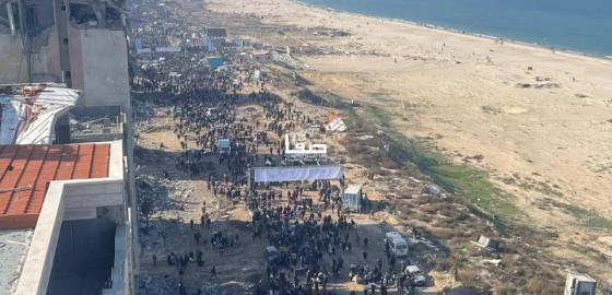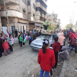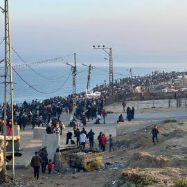 مواطنون من مدينة غزة يستقبلون النازحين العائدين بالمركبات من جنوبي القطاع عبر شارع صلاح الدين 27 يناير 2025