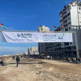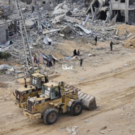 أهالي حي الفراحين شرقي خان يونس يصلون بين ركام منازلهم المدمرة بعد وقف الحرب الإسرائيلية على قطاع غزة 24 يناير 2025