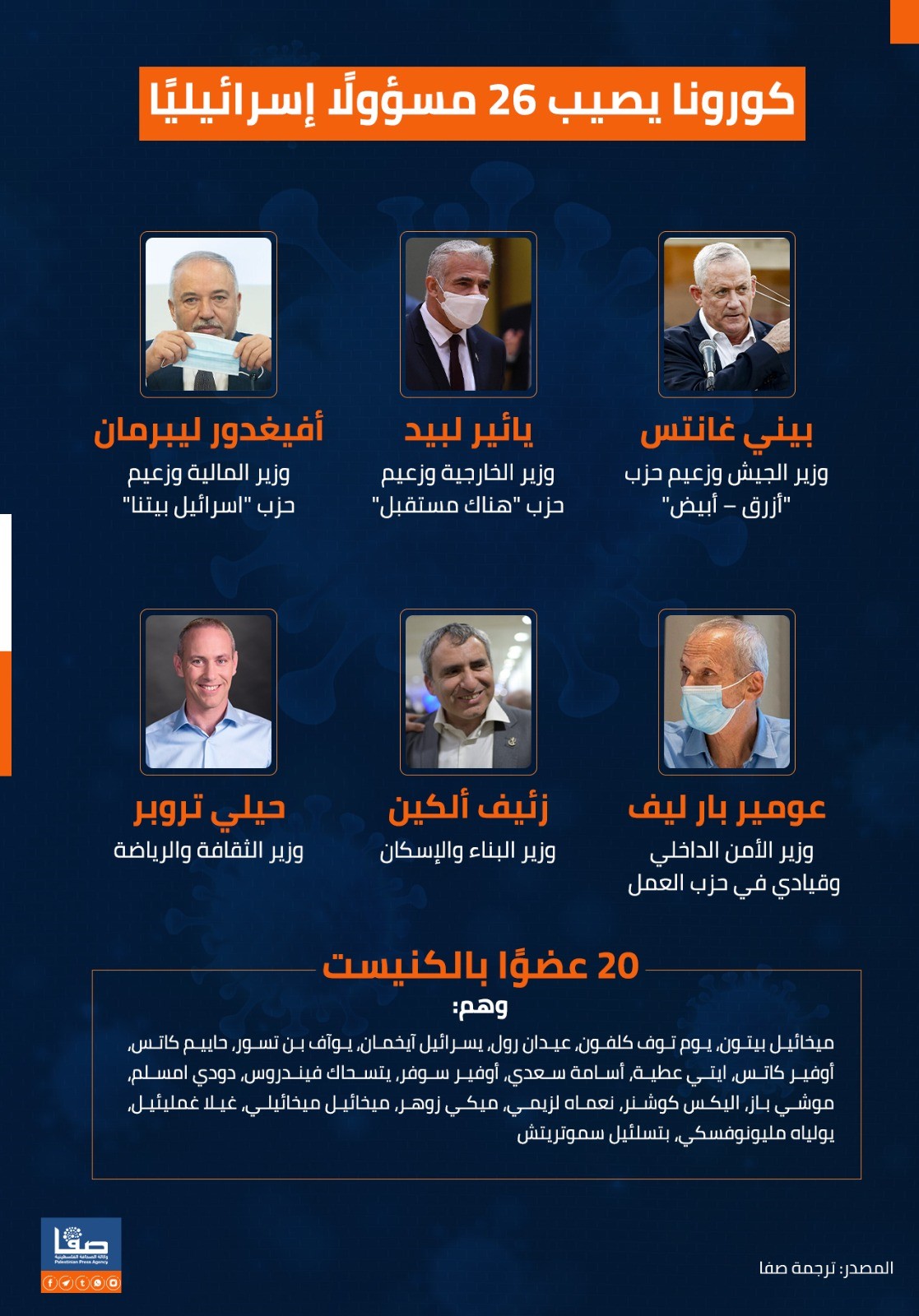 كورونا يصيب 26 مسؤولًا إسرائيليًا
