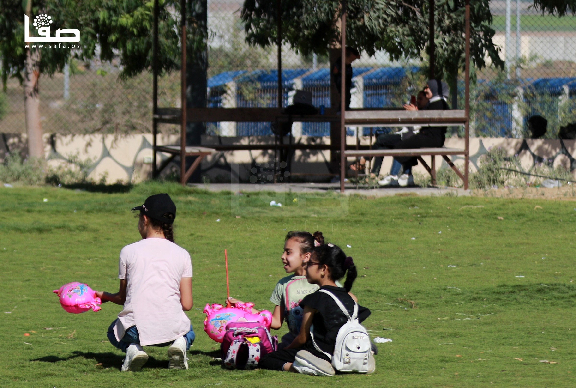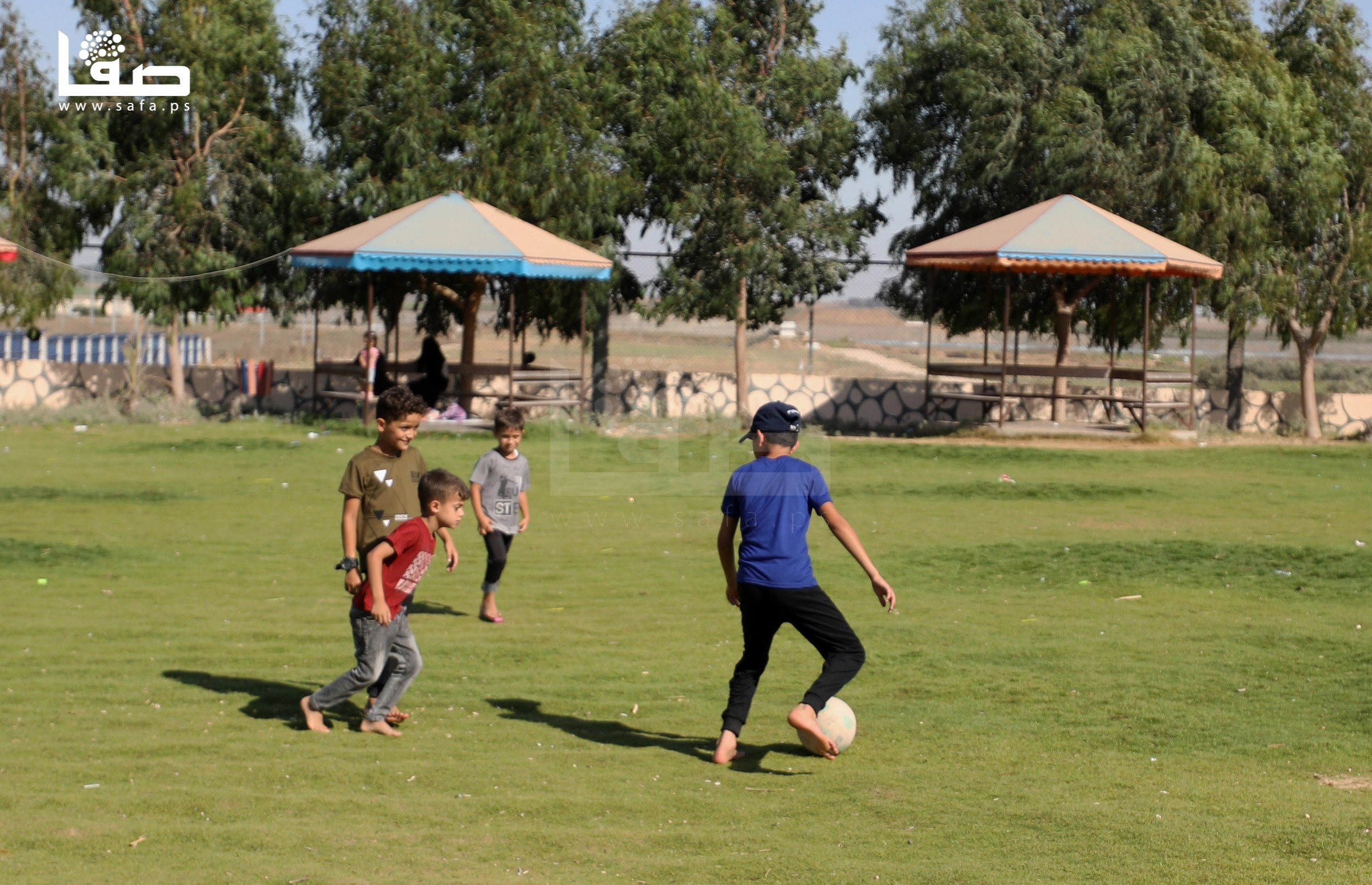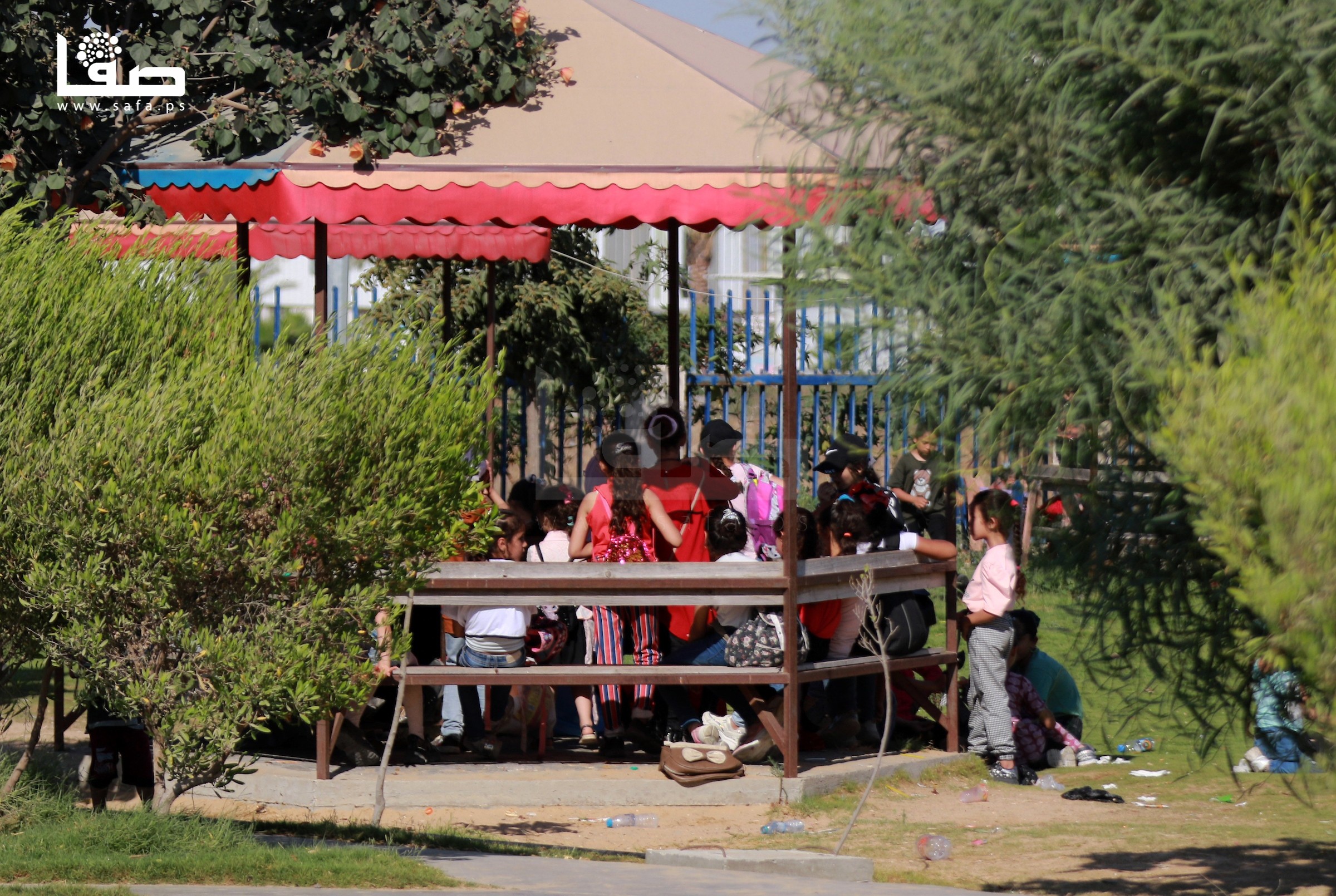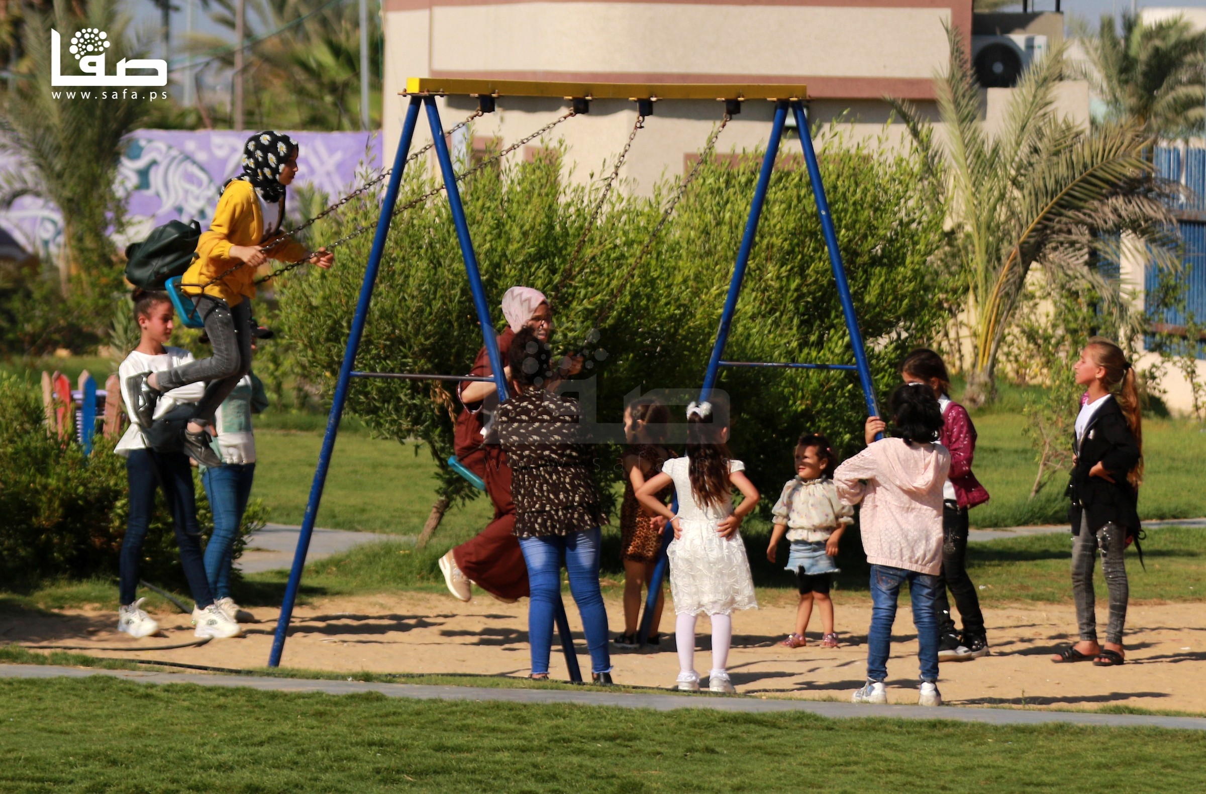 أطفال يلعبون داخل حديقة العودة شرقي مدينة غزة