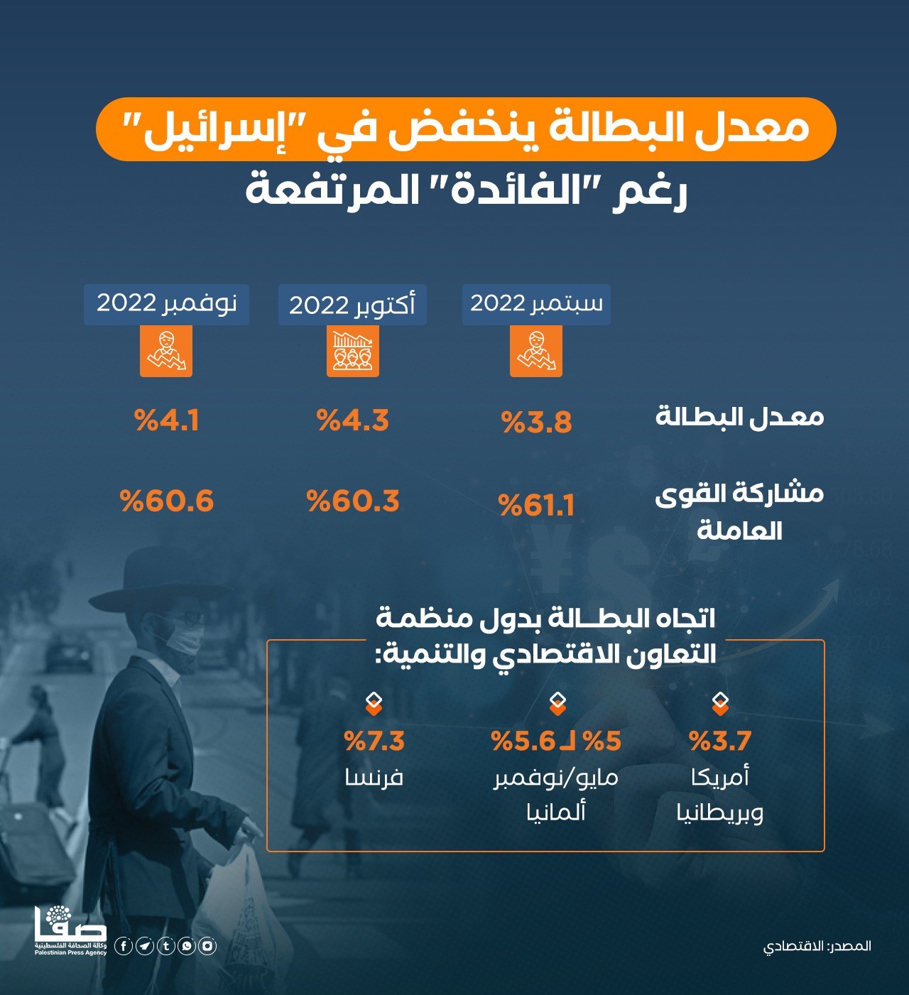 معدل البطالة ينخفض في "إسرائيل" رغم "الفائدة" المرتفعة