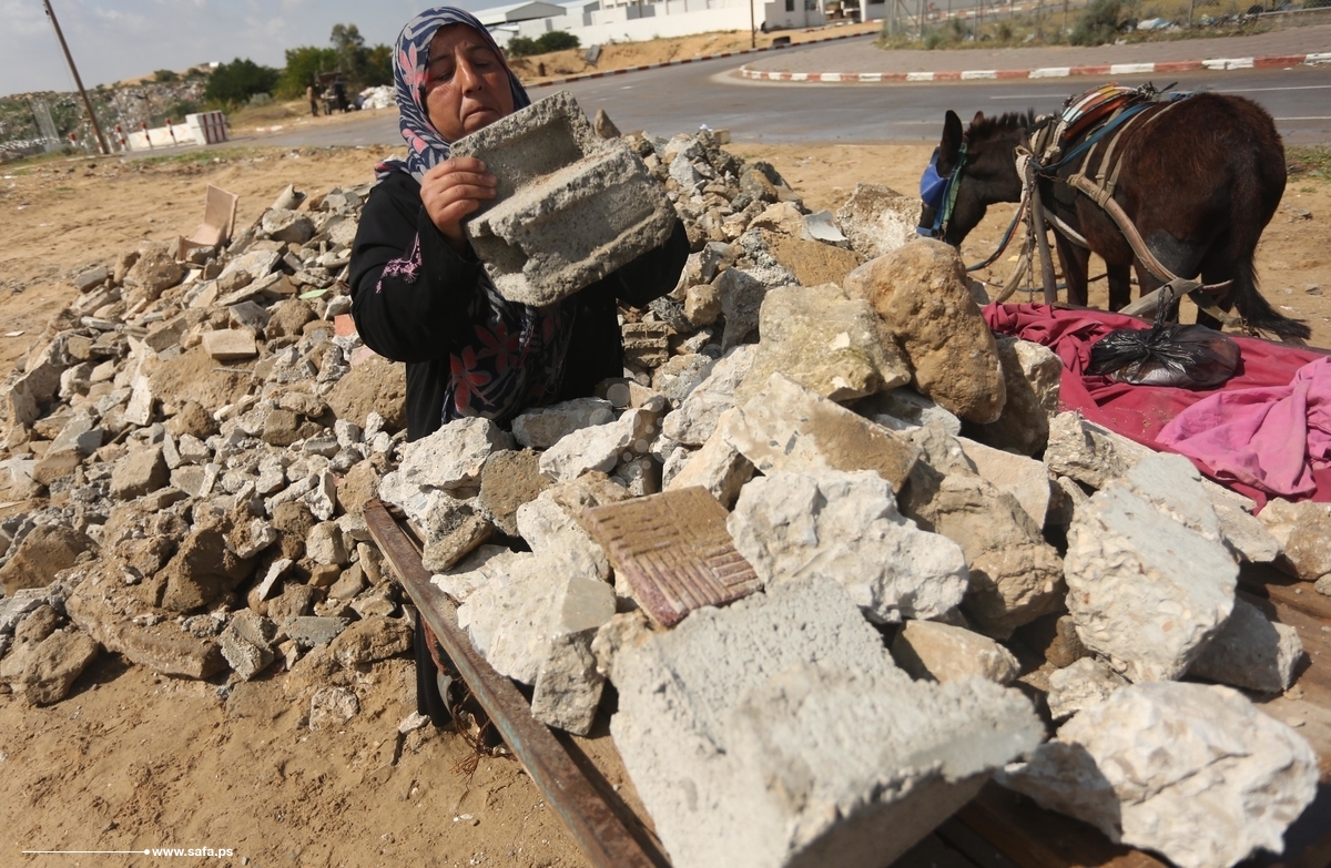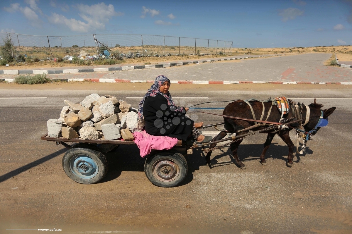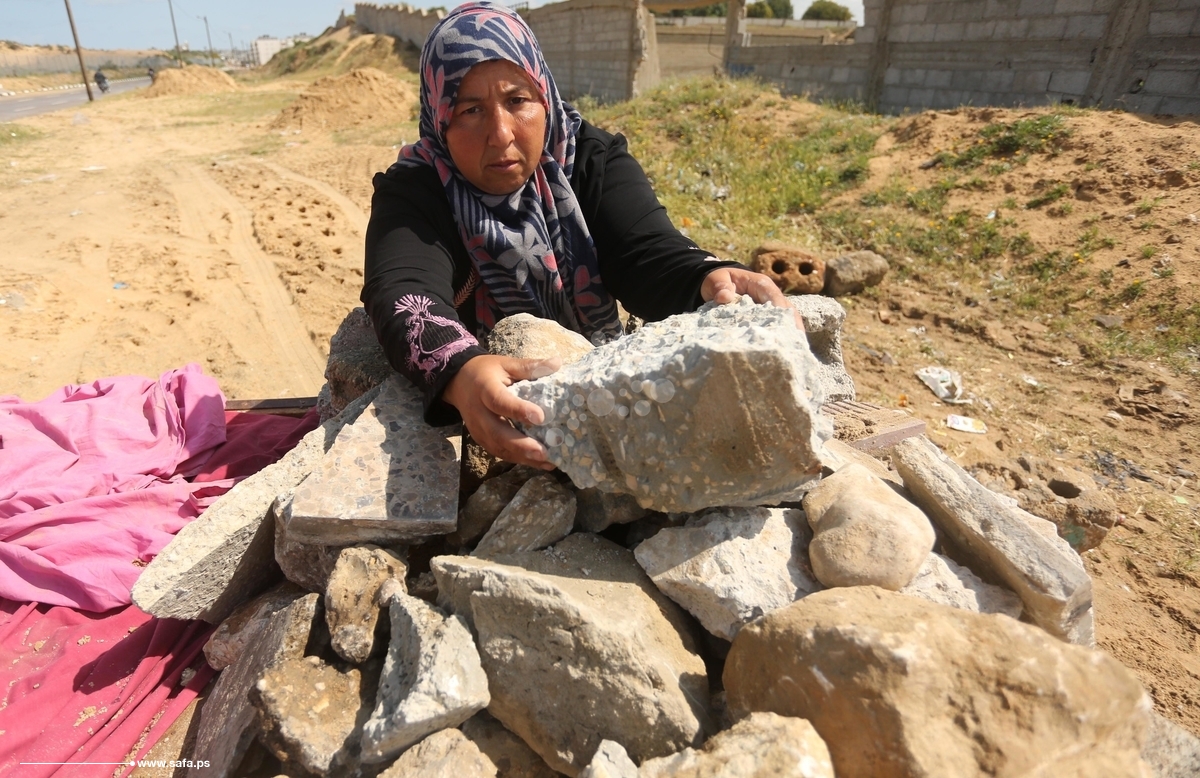 "جيهان" تجمع الحجارة وتستفيد من بيعها لإعالة عائلتها بخان يونس