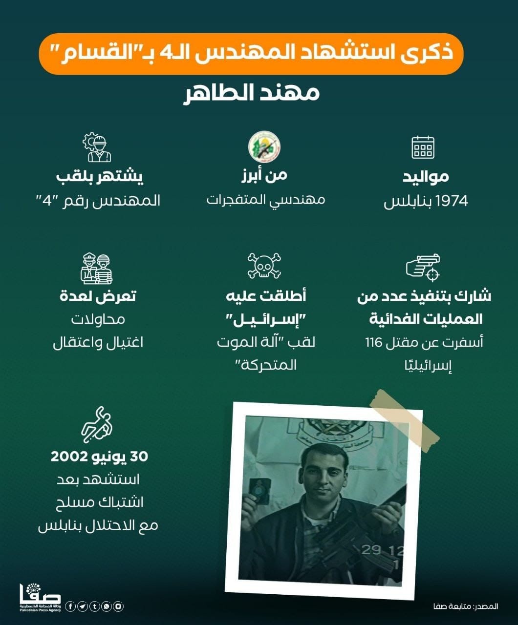ذكرى استشهاد المهندس الـ4 "بالقسام".. مهند الطاهر