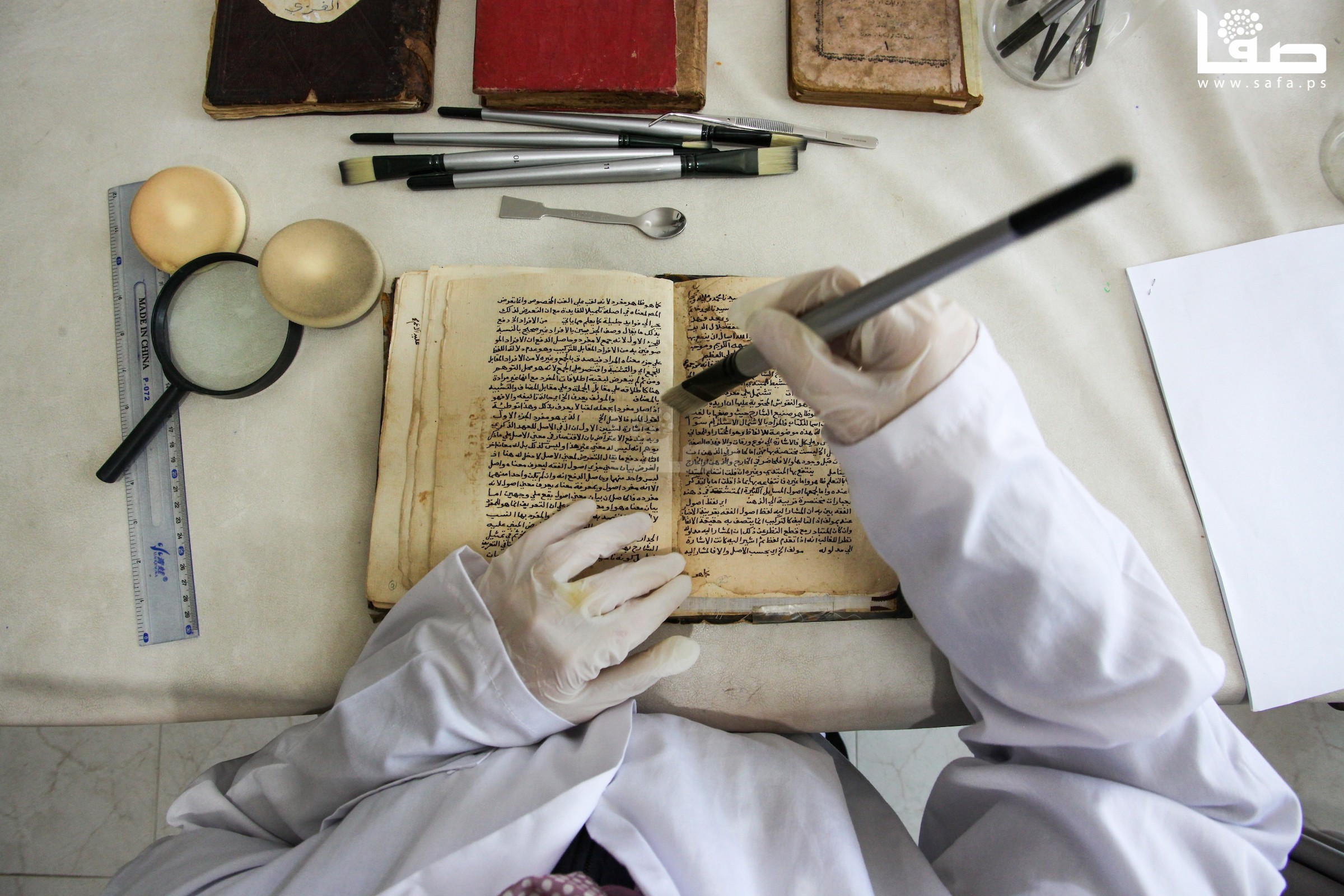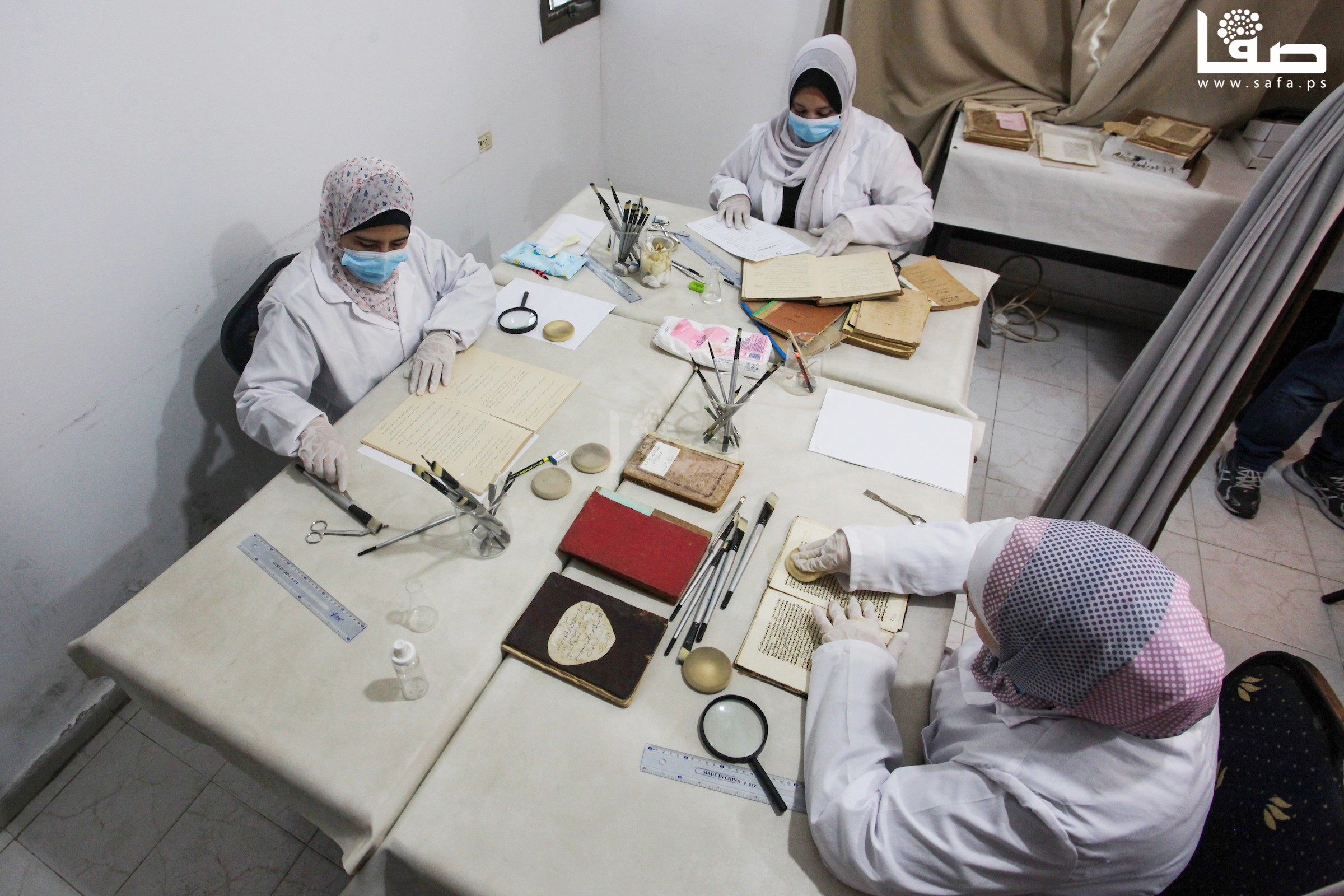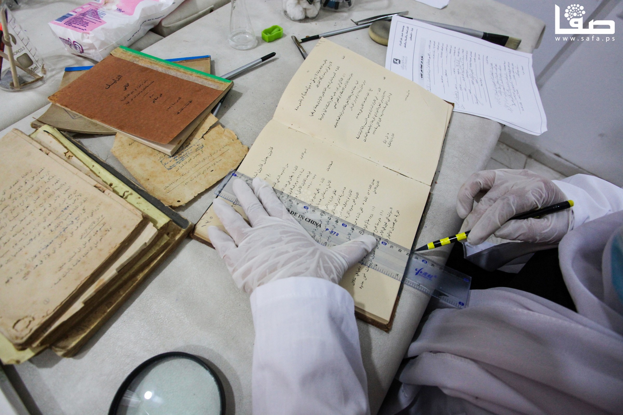 ترميم وأرشفة الكتب والمخطوطات القديمة في مدينة غزة
