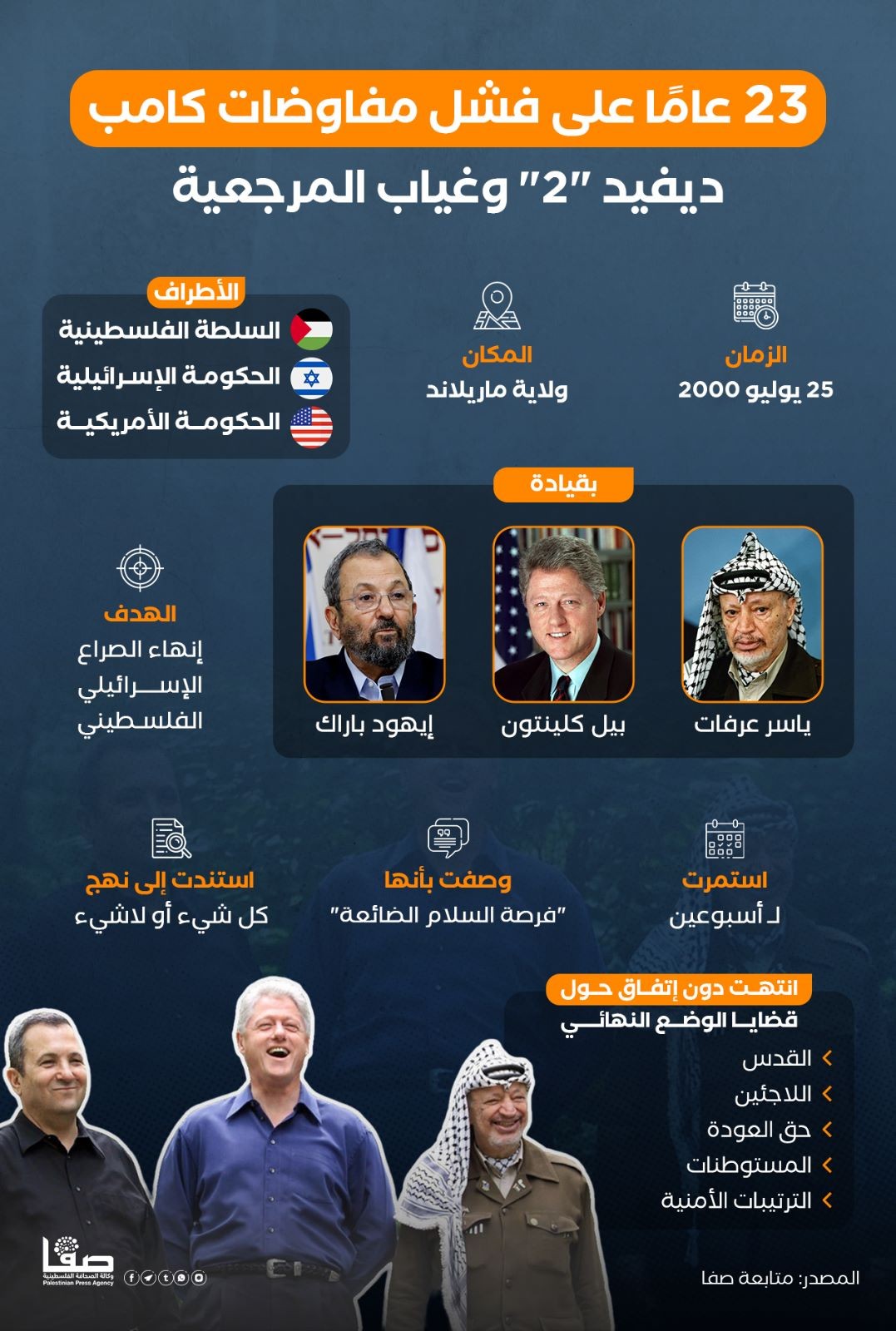 23 عامًا على فشل مفاوضات كامب ديفيد "2" وغياب المرجعية