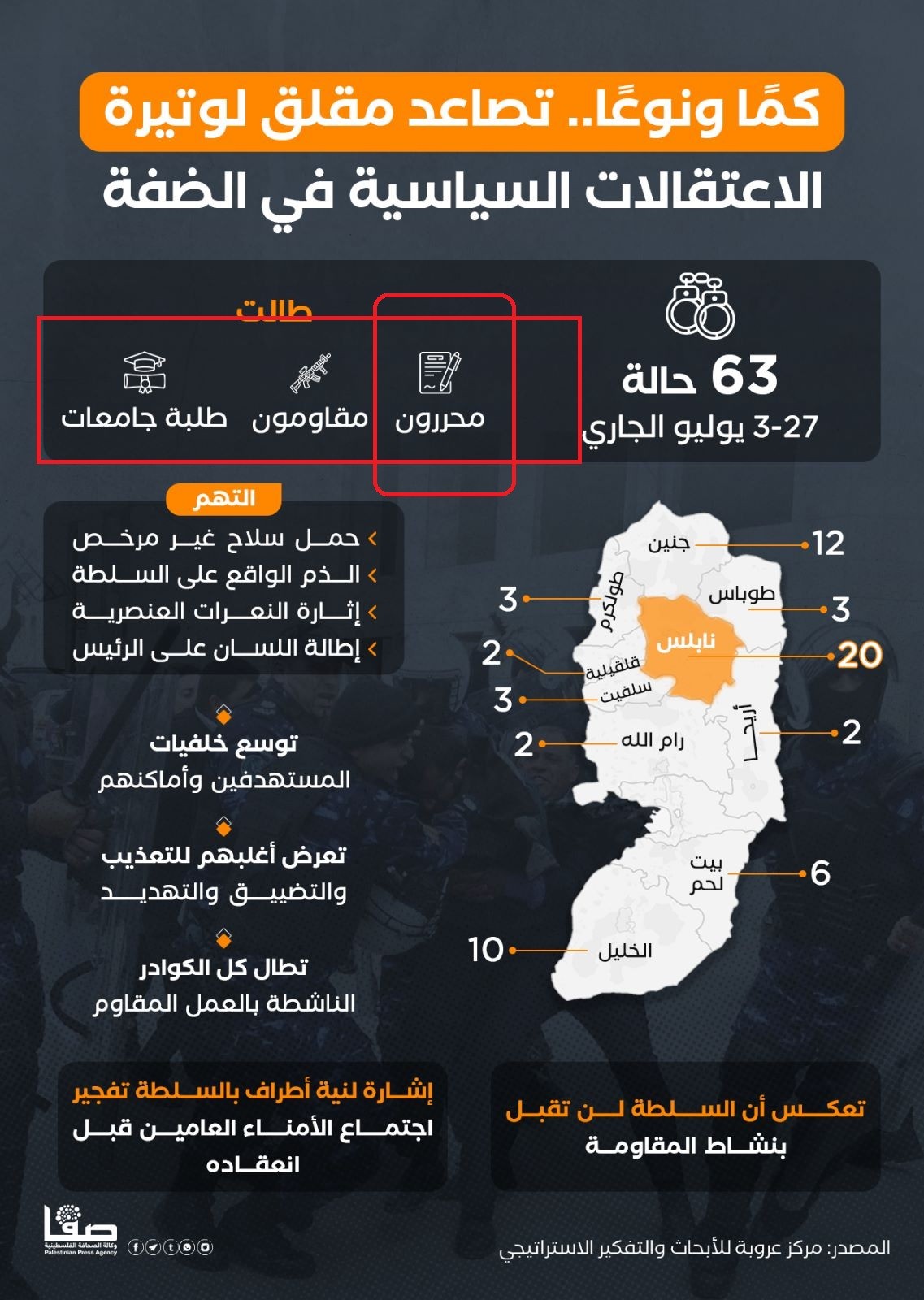 كمًا ونوعًا.. تصاعد مقلق لوتيرة الاعتقالات السياسية في الضفة