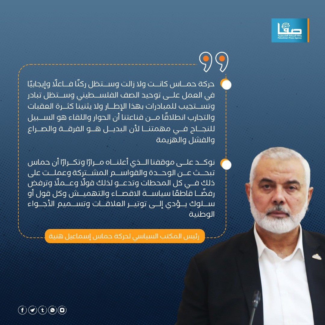 أبرز ما جاء في كلمة إسماعيل هنية بلقاء "الأمناء العامين" بمصر