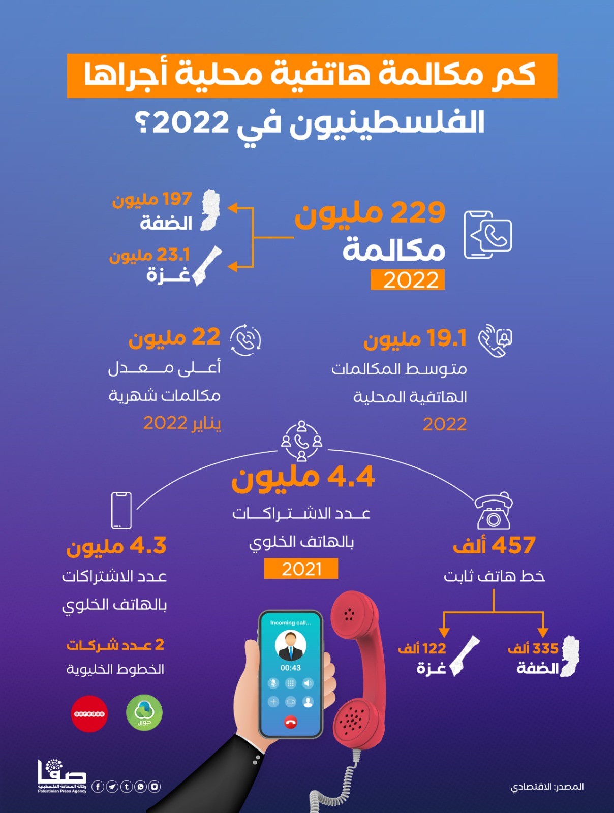 كم مكالمة هاتفية محلية أجراها الفلسطينيون في 2022؟