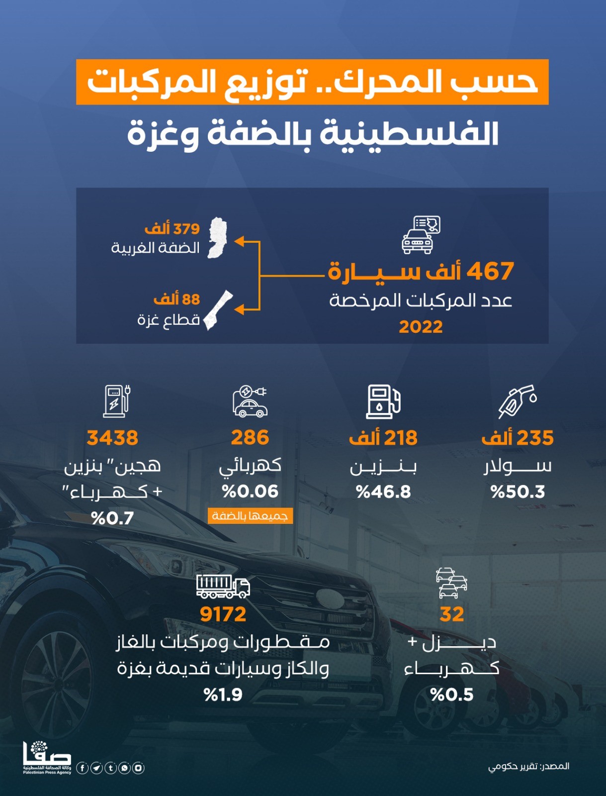 حسب المحرك.. توزيع المركبات الفلسطينية بالضفة وغزة