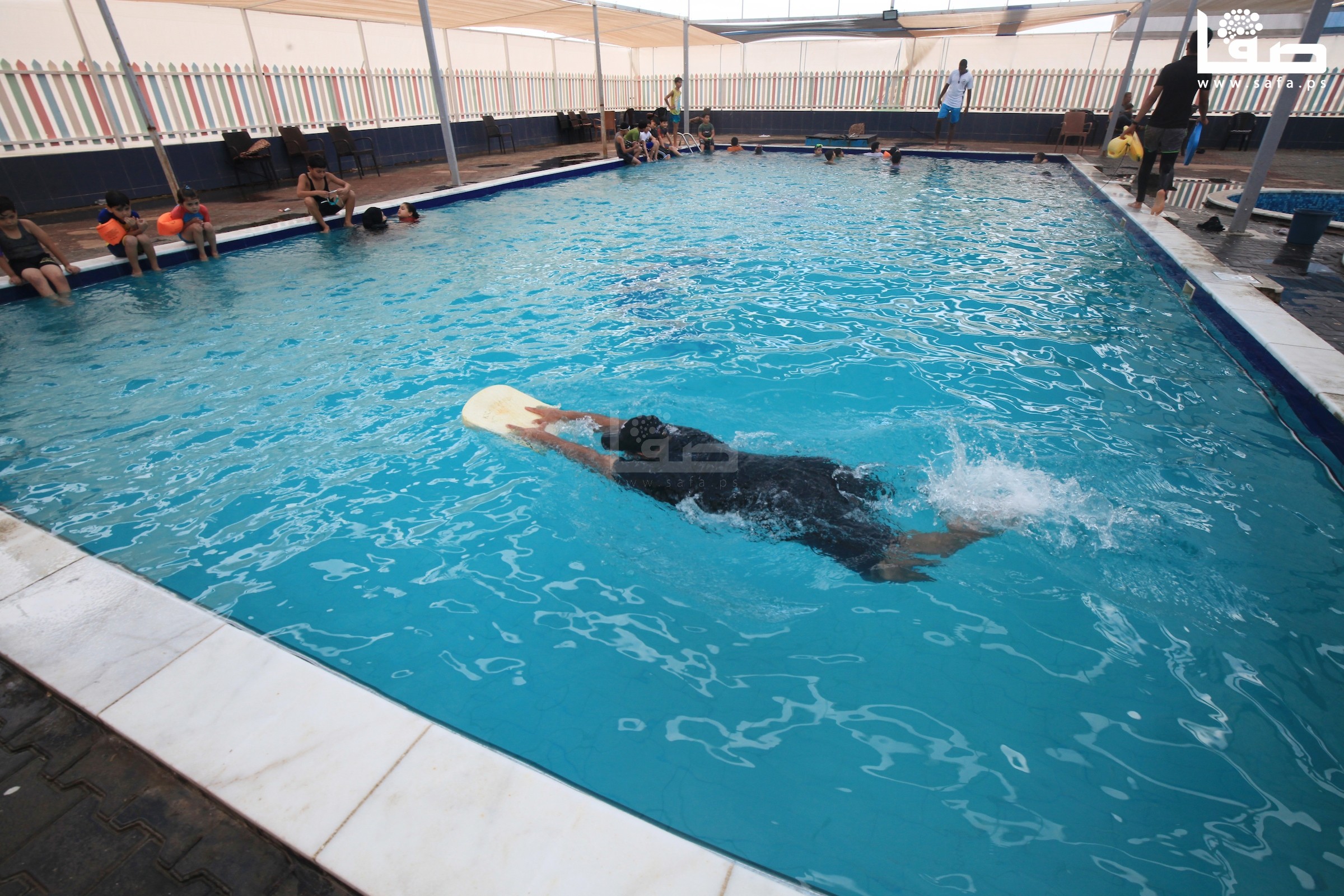 شاب من ذوي "الهمم" يُدرب أطفالًا على السباحة بغزة