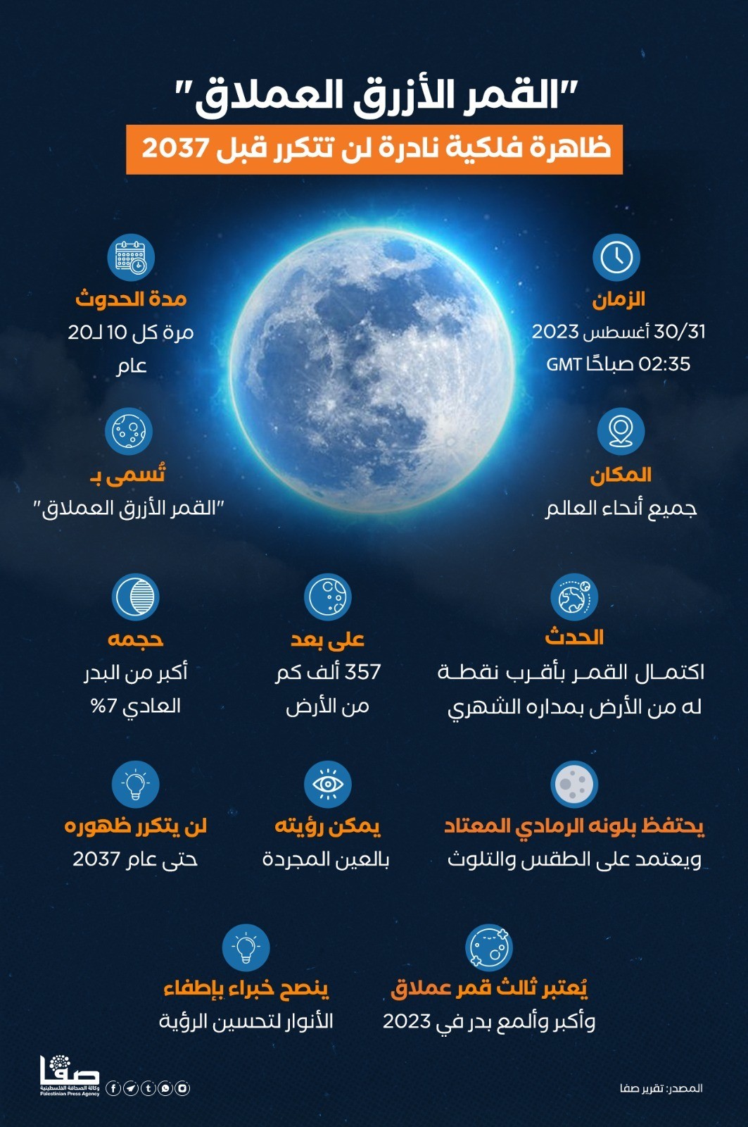 "القمر الأزرق العملاق".. ظاهرة فلكية نادرة لن تتكرر قبل 2037