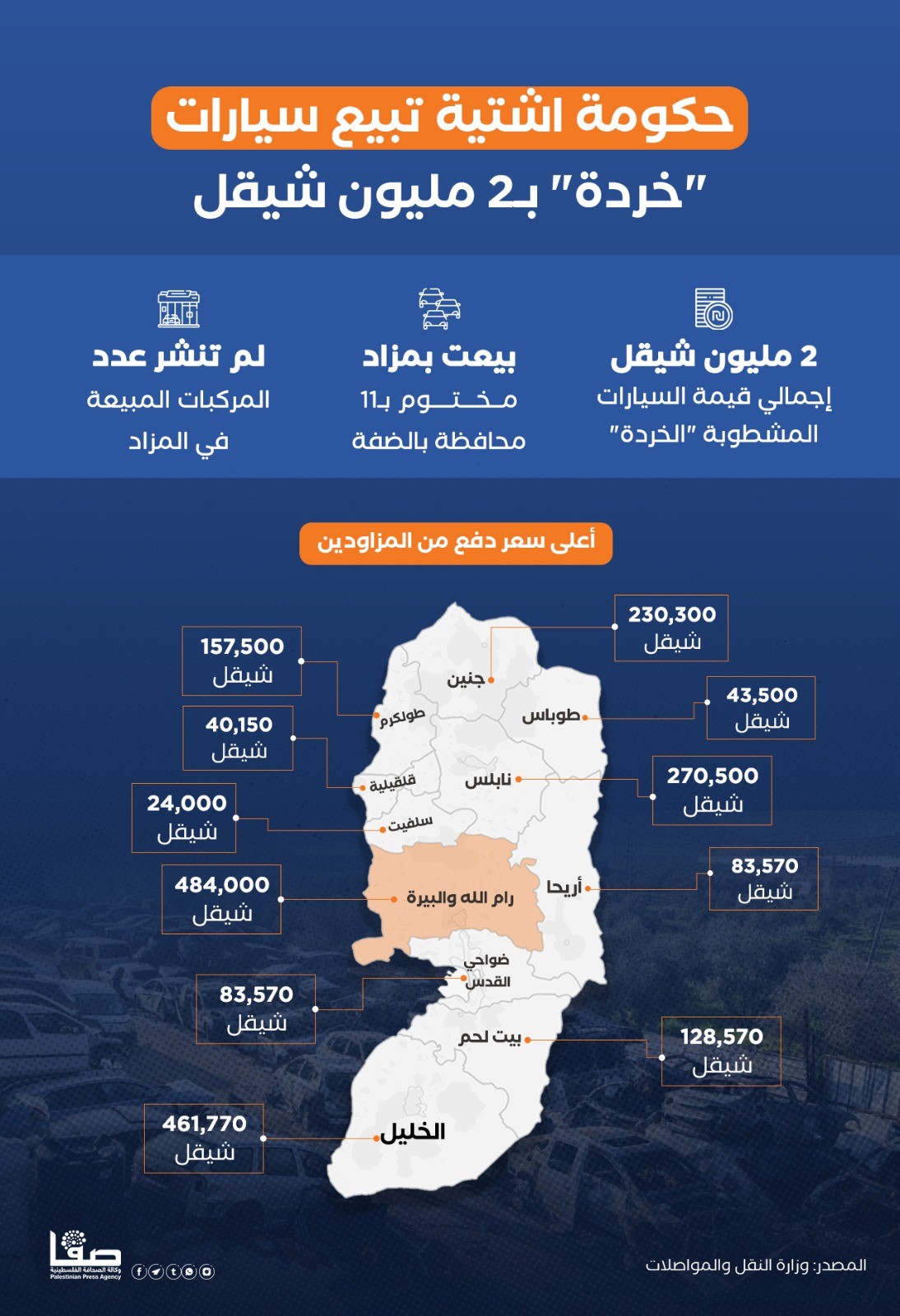 حكومة اشتية تبيع سيارات "خردة" بـ2 مليون شيقل