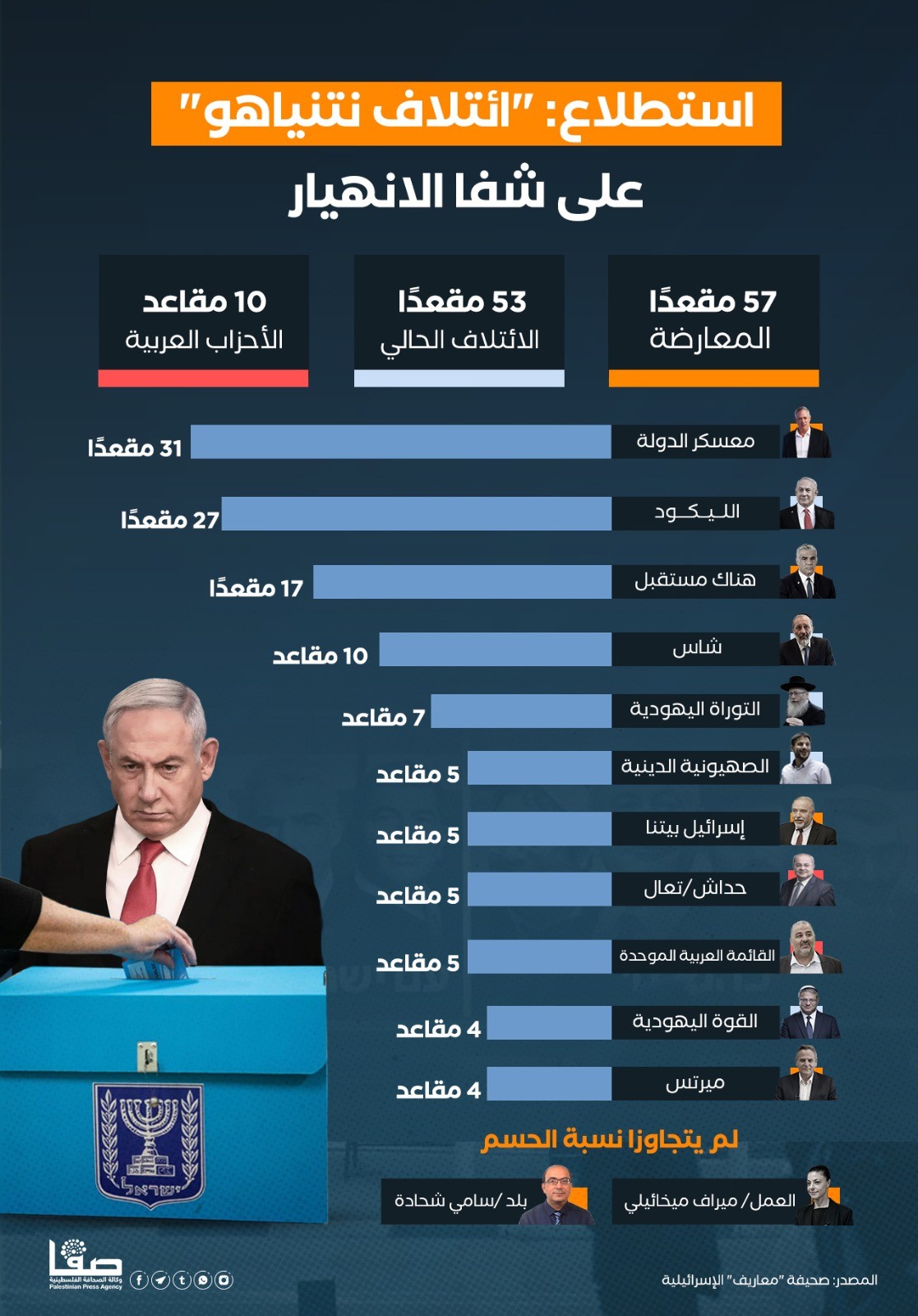 استطلاع: "ائتلاف نتنياهو" على شفا الانهيار