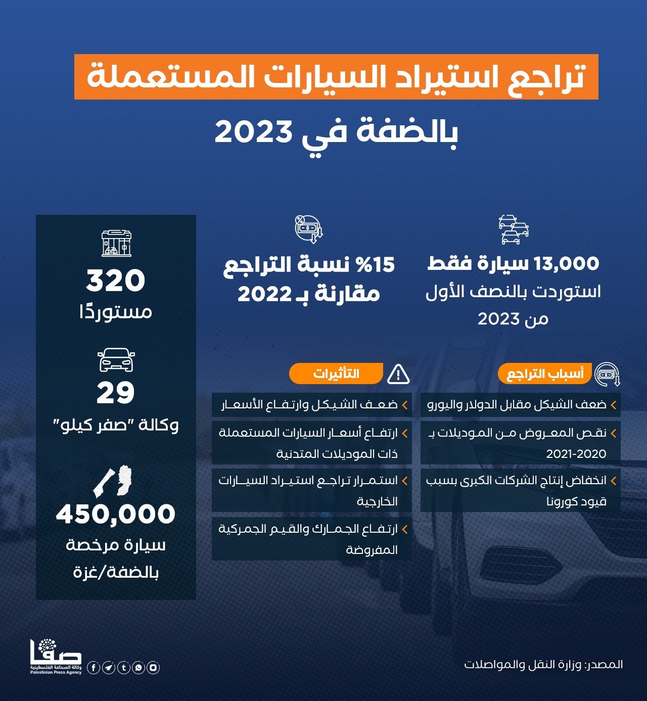 تراجع استيراد السيارات المستعملة بالضفة في 2023