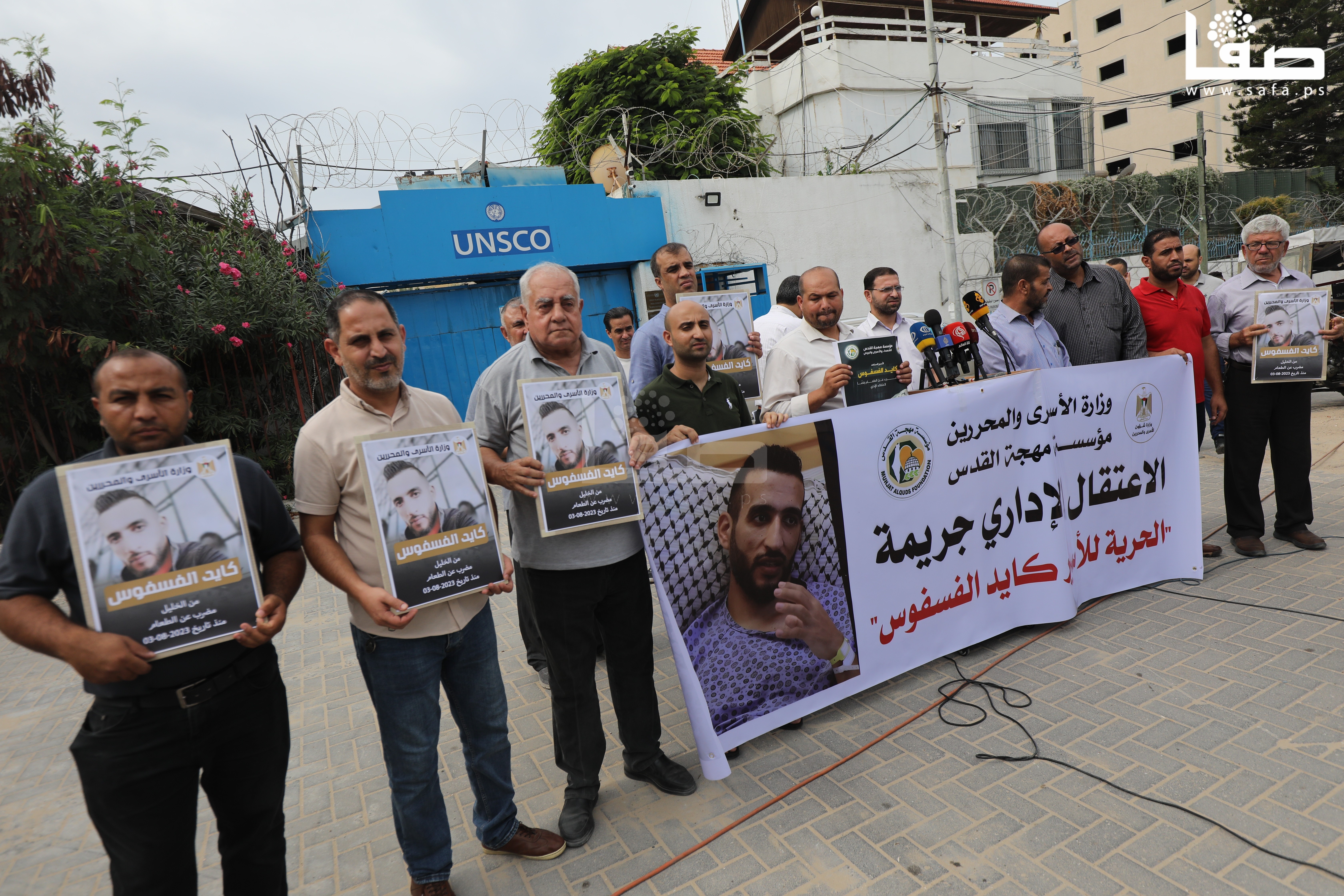 وقفة أمام مقر الأمم المتحدة تضامنًا مع الأسير كايد الفسفوس المضرب عن الطعام في سجون الاحتلال