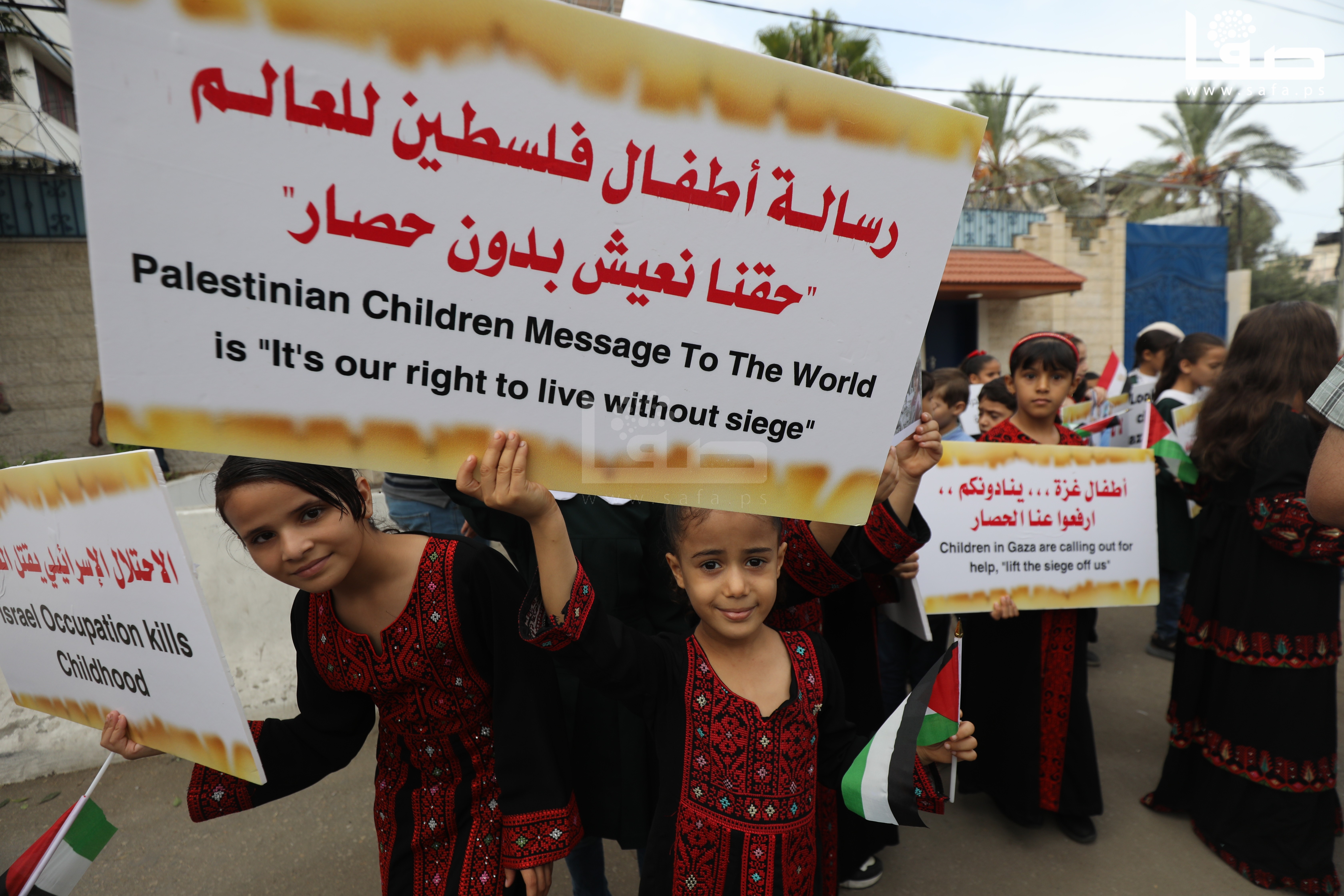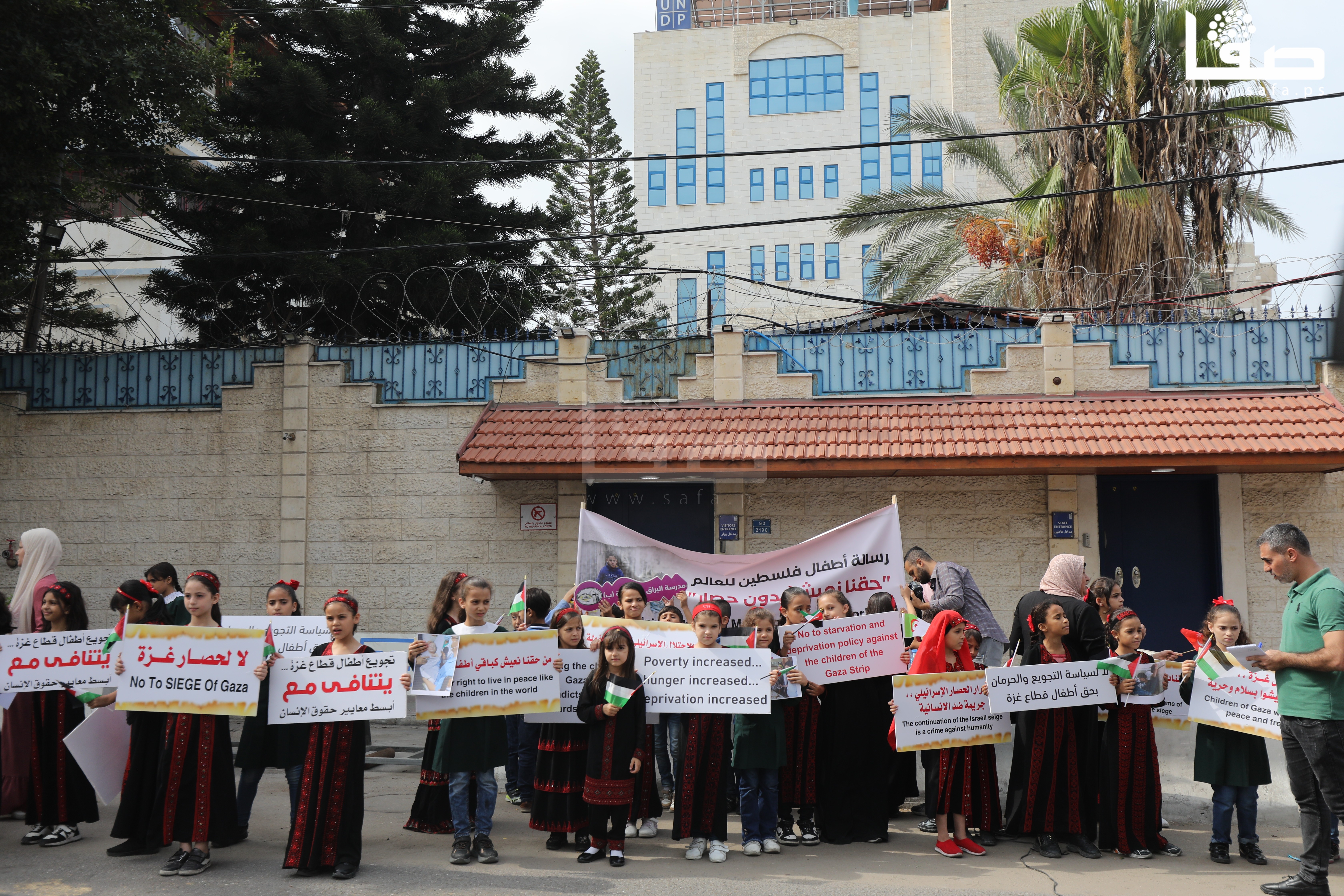 تظاهرة لأطفال غزة أمام مقر "الأونروا" للمطالبة بكسر الحصار