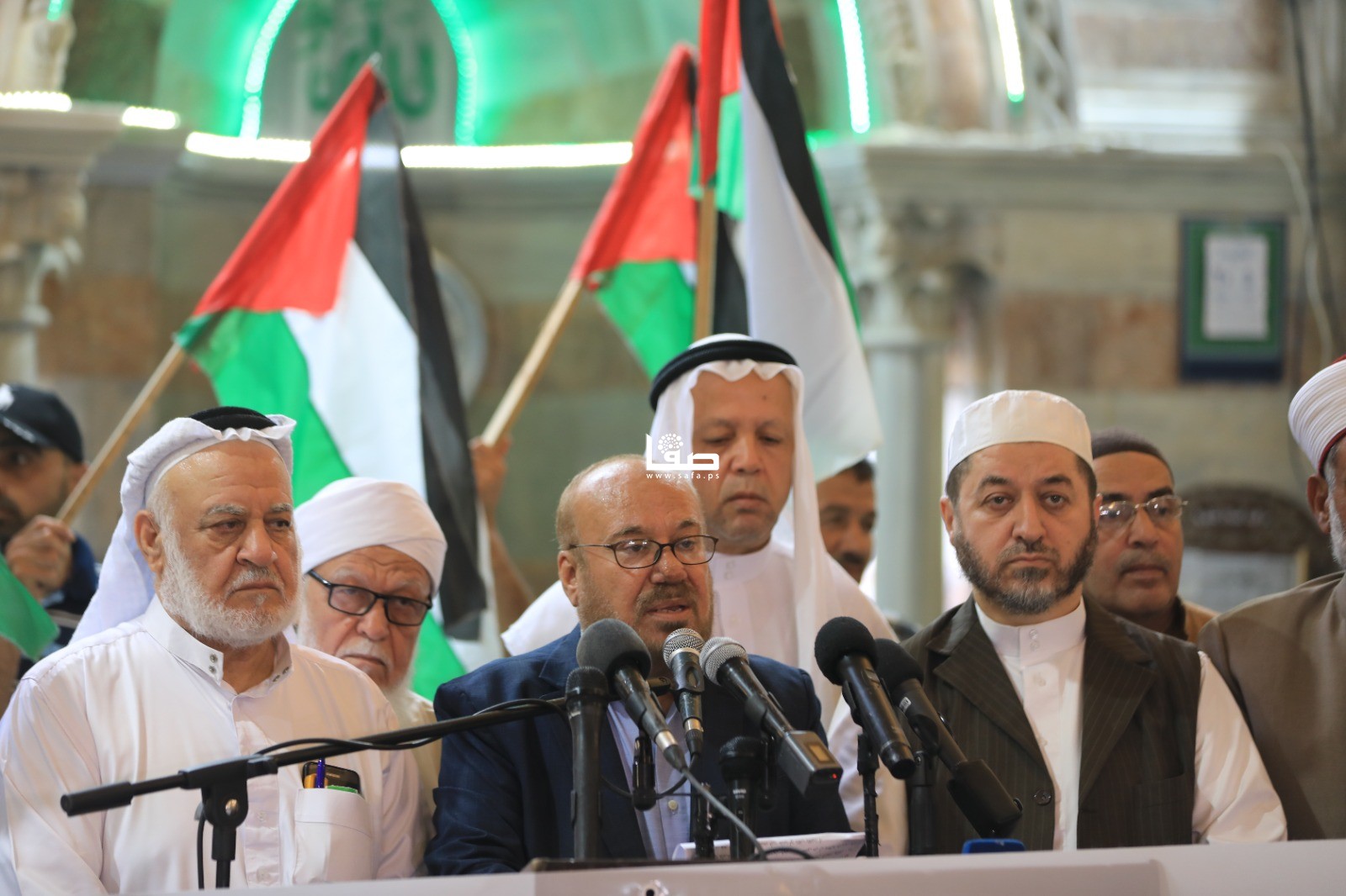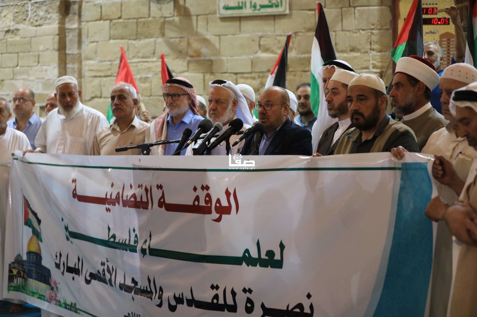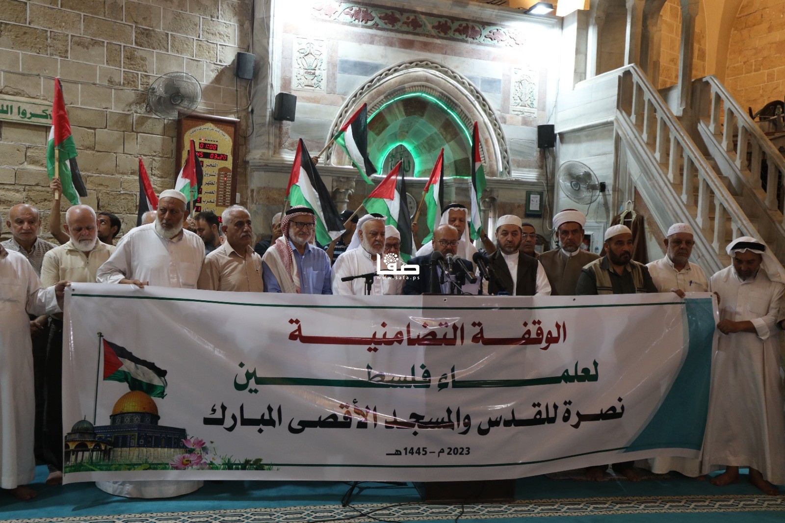 وقفة لهيئة علماء فلسطين تضامنا مع الأقصى داخل المسجد العمري
