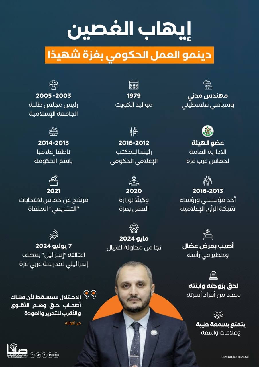 إيهاب الغصين.. دينمو العمل الحكومي في غزة شهيدًا