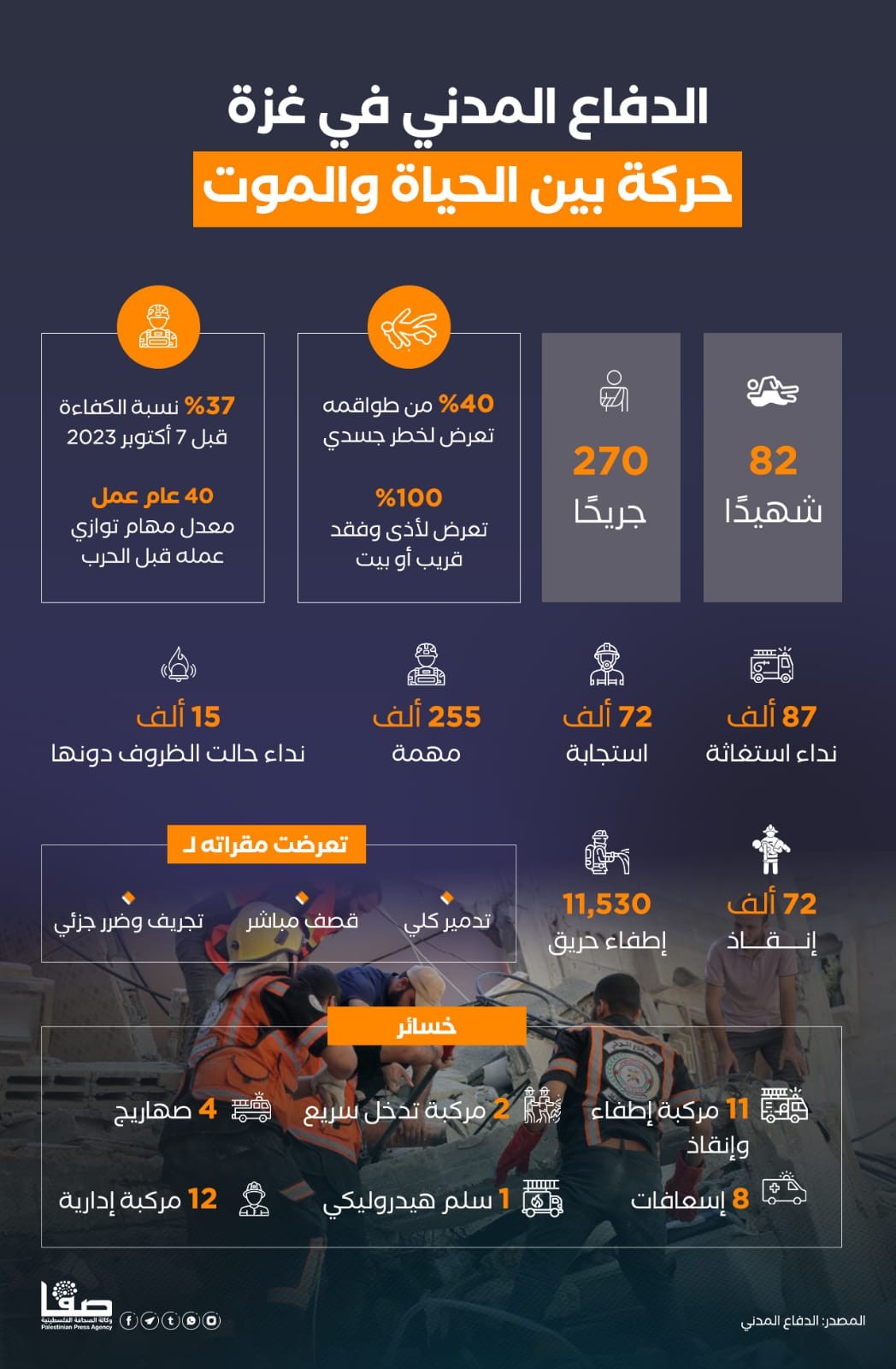 الدفاع المدني في غزة.. حركة بين الحياة والموت