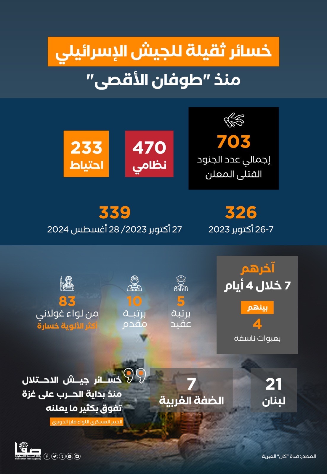 خسائر ثقيلة للجيش الإسرائيلي منذ طوفان الأقصى"