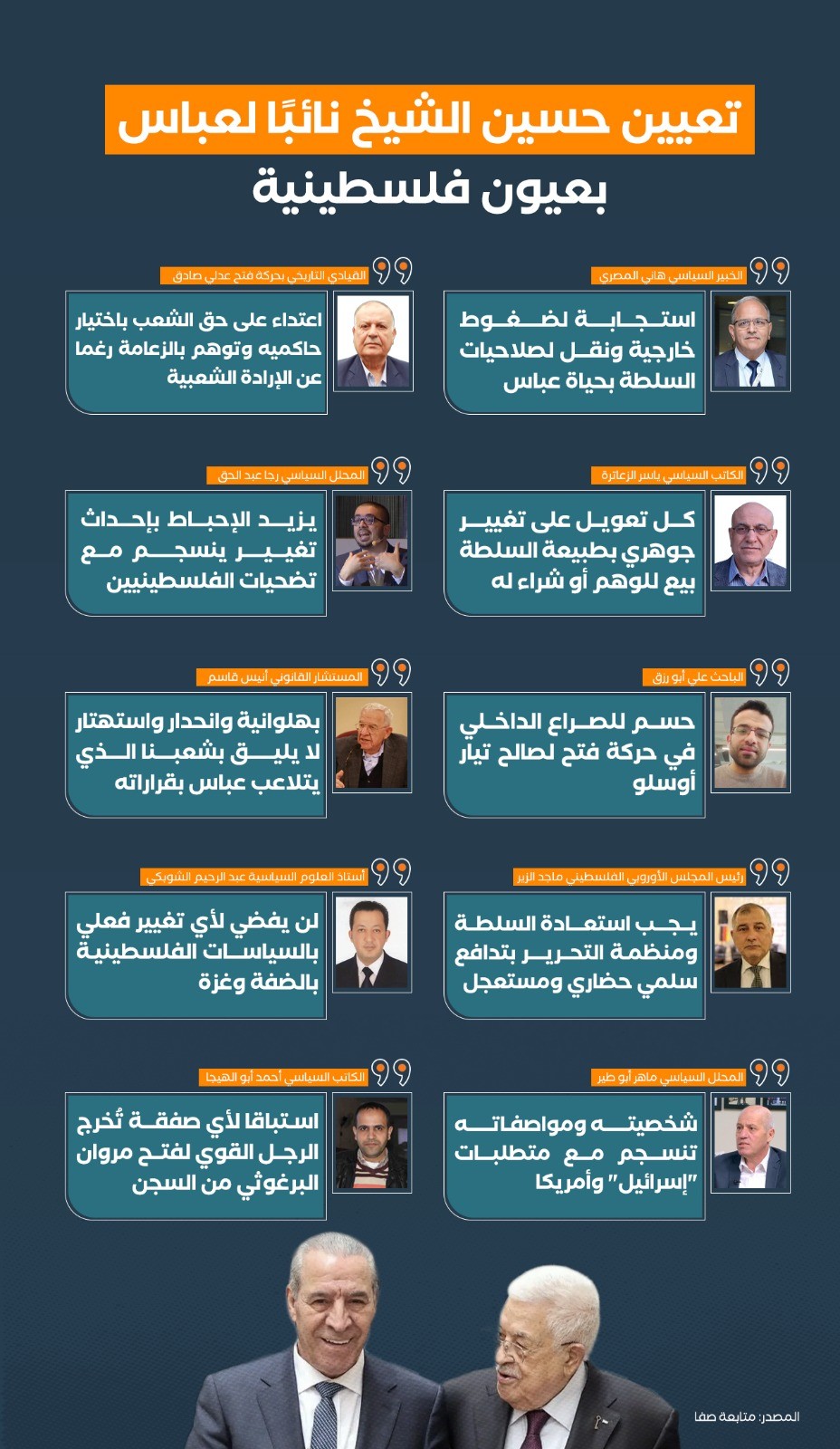 تعيين حسين الشيخ نائباً لعباس بعيون فلسطينية