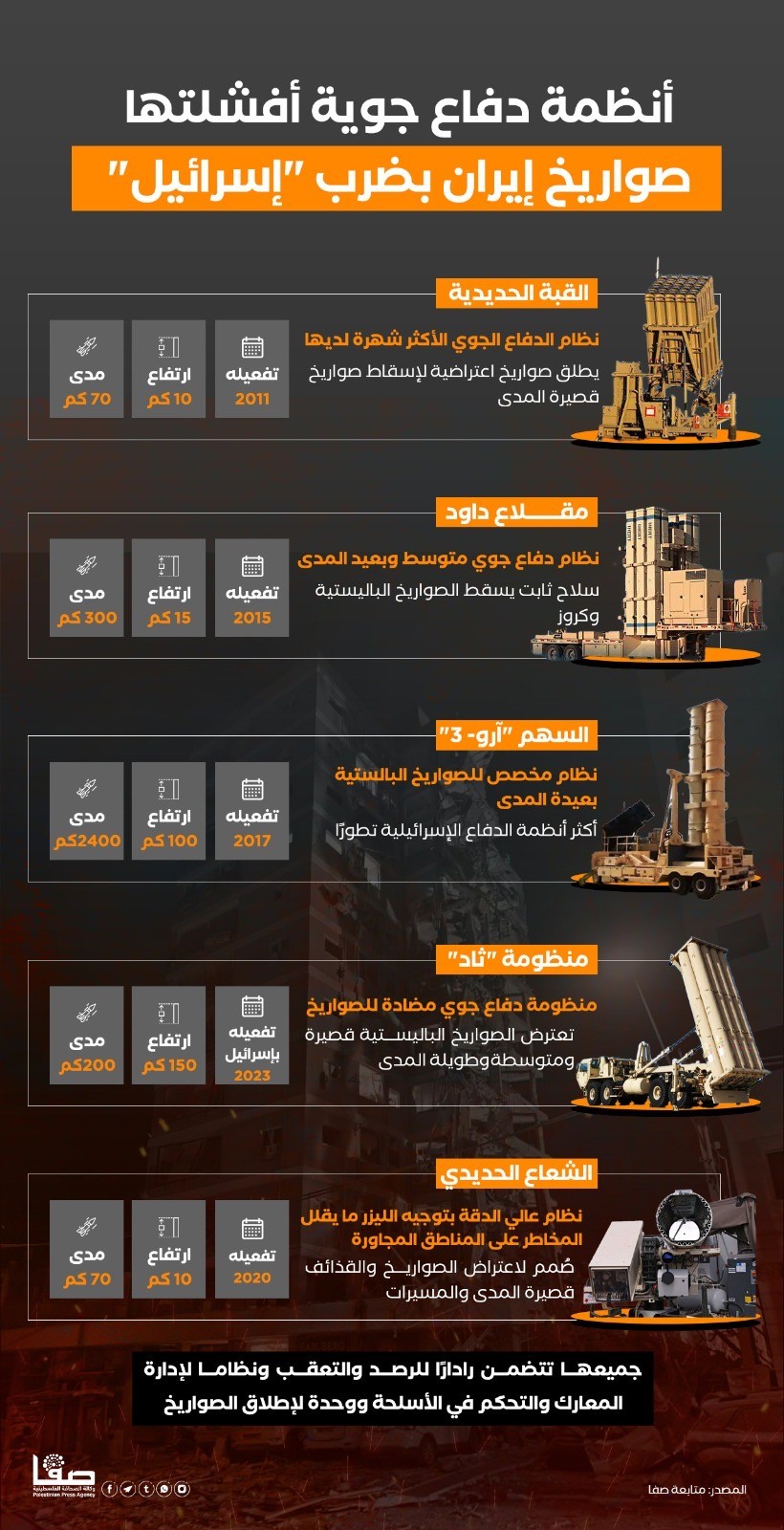أنظمة دفاع جوية أفشلتها صواريخ إيران بضرب "إسرائيل"