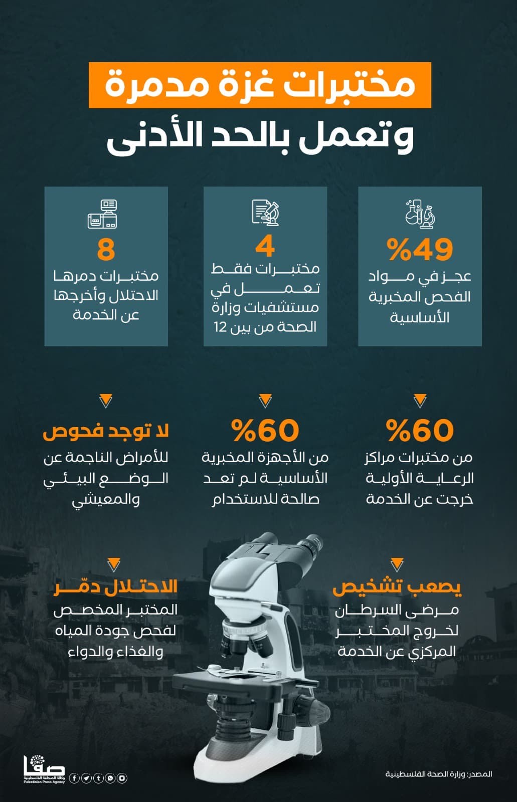 مختبرات غزة مدمرة وتعمل بالحد الأدنى