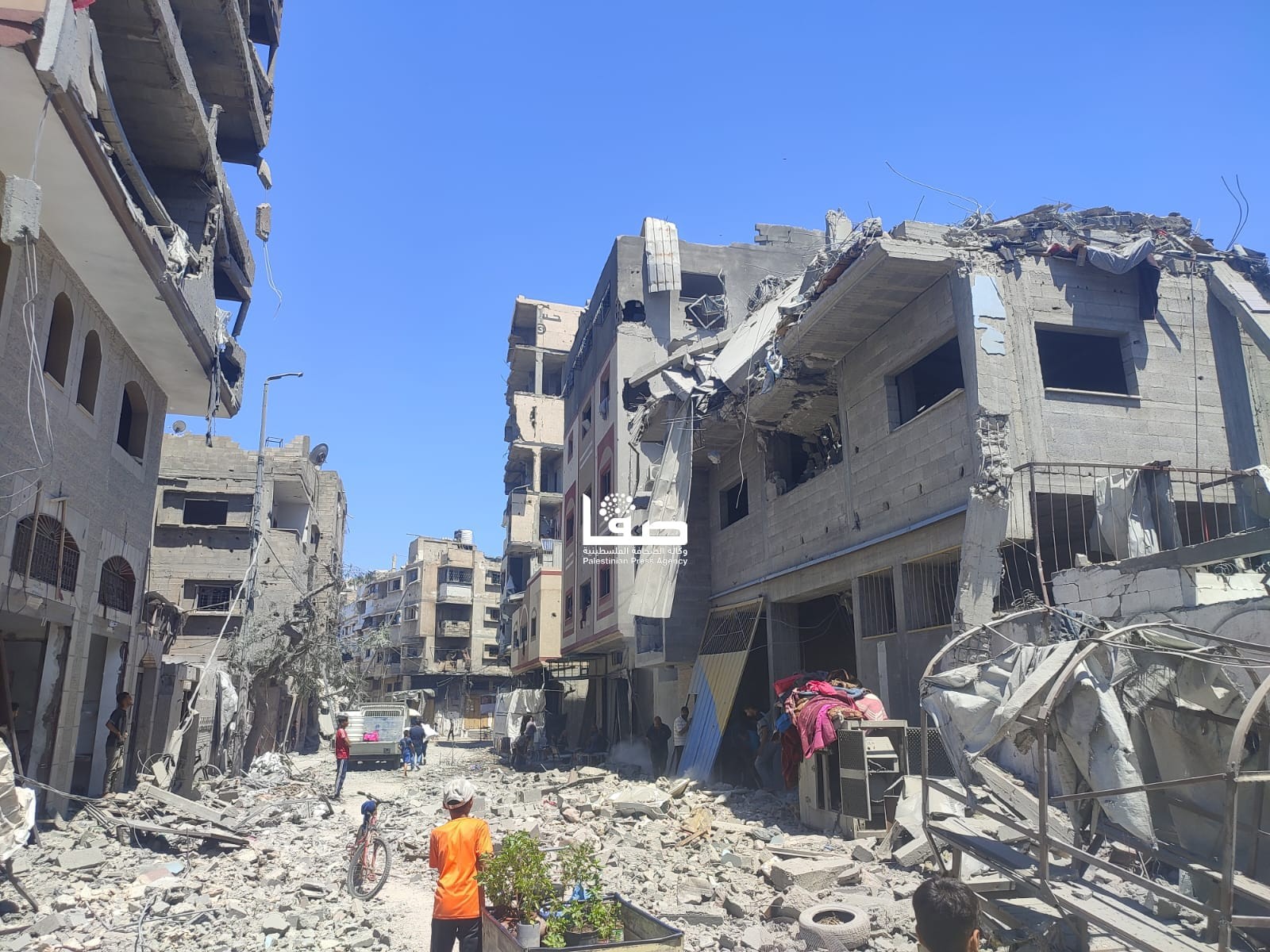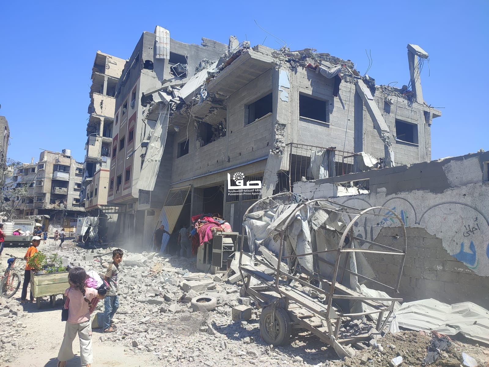 آثار الدمار الذي خلّفه قصف طائرات الاحتلال منزلًا لعائلة دلول قرب دوار أبو حبيب في حي الزيتون جنوب شرقي مدينة غزة