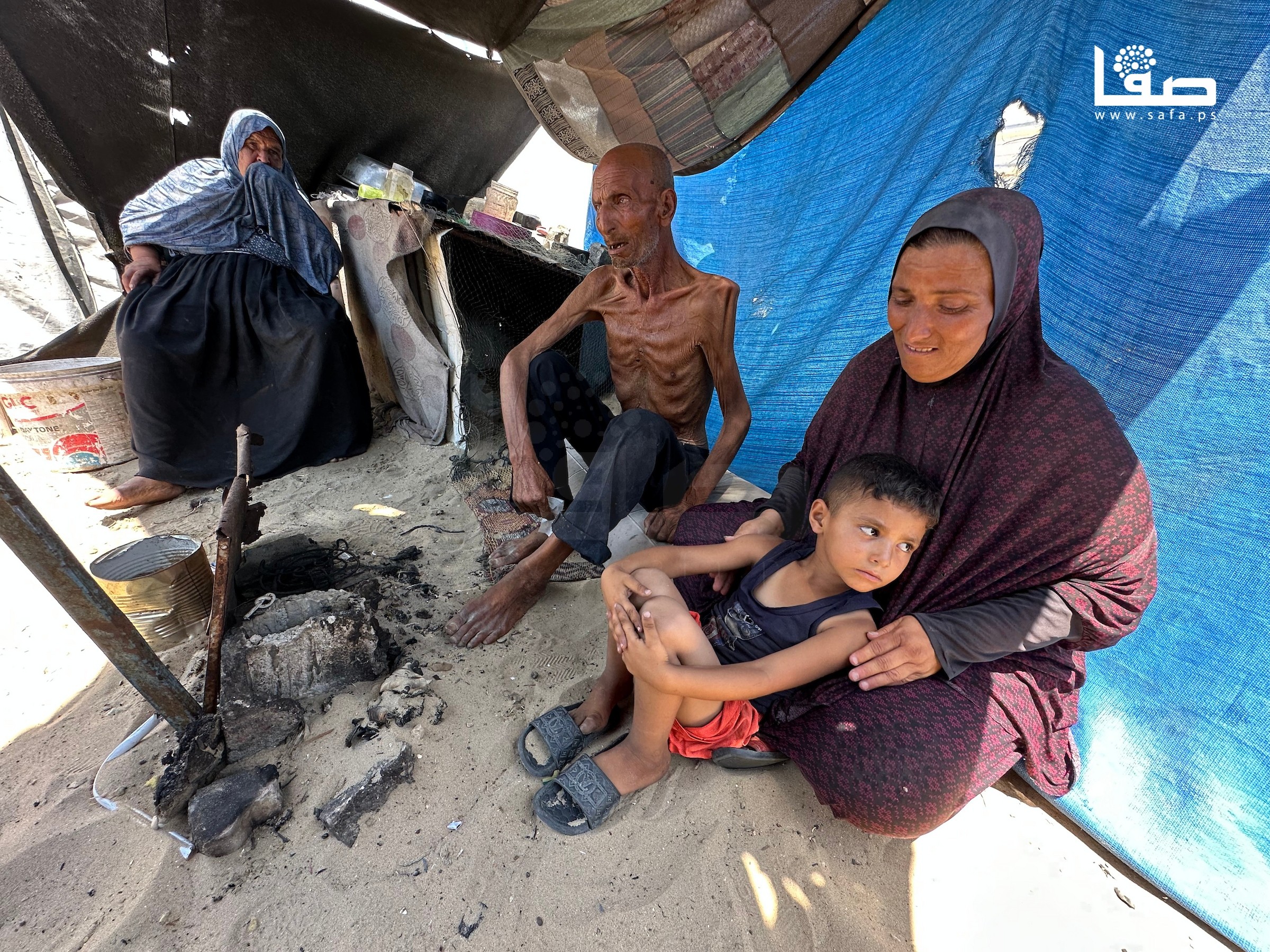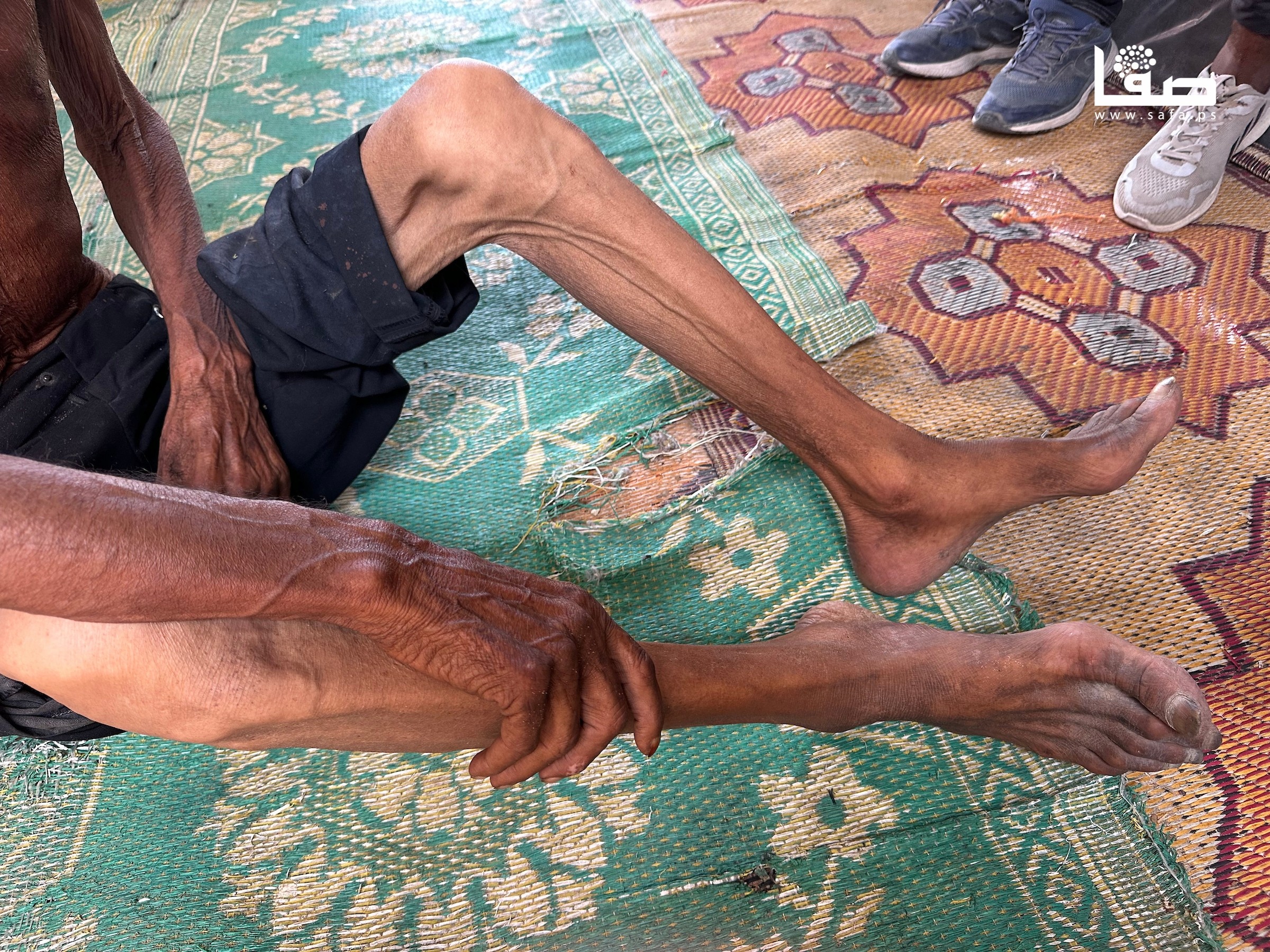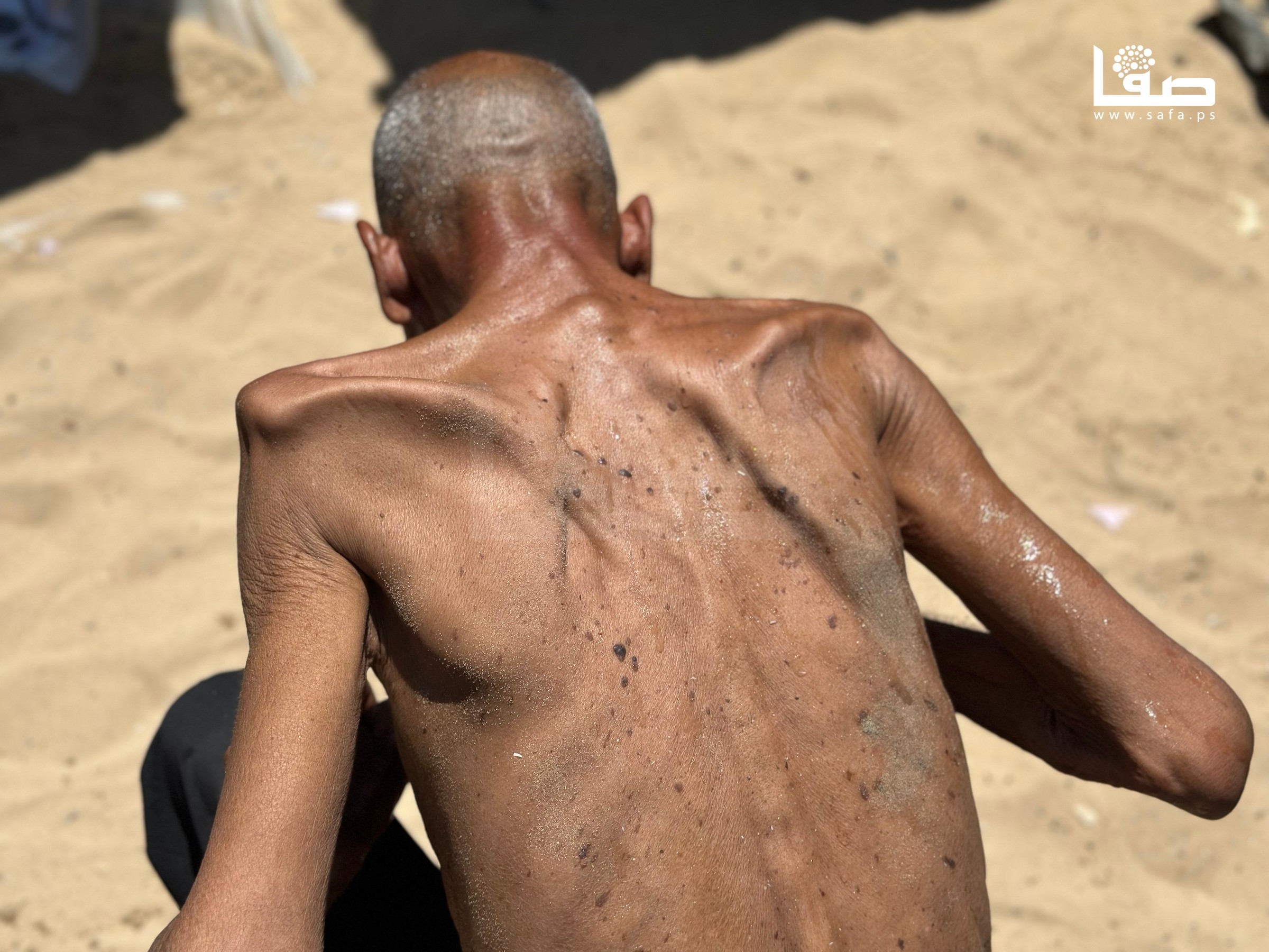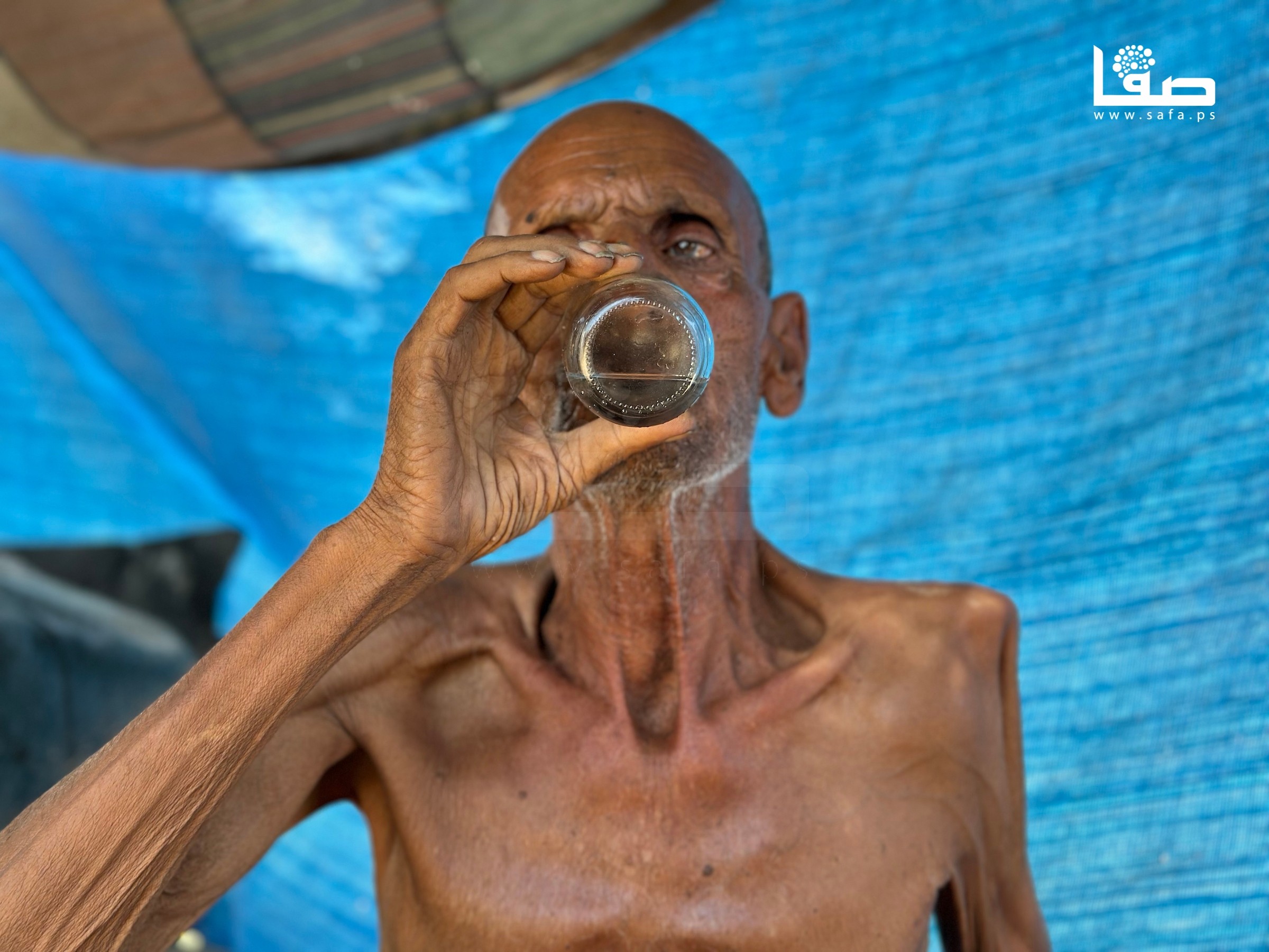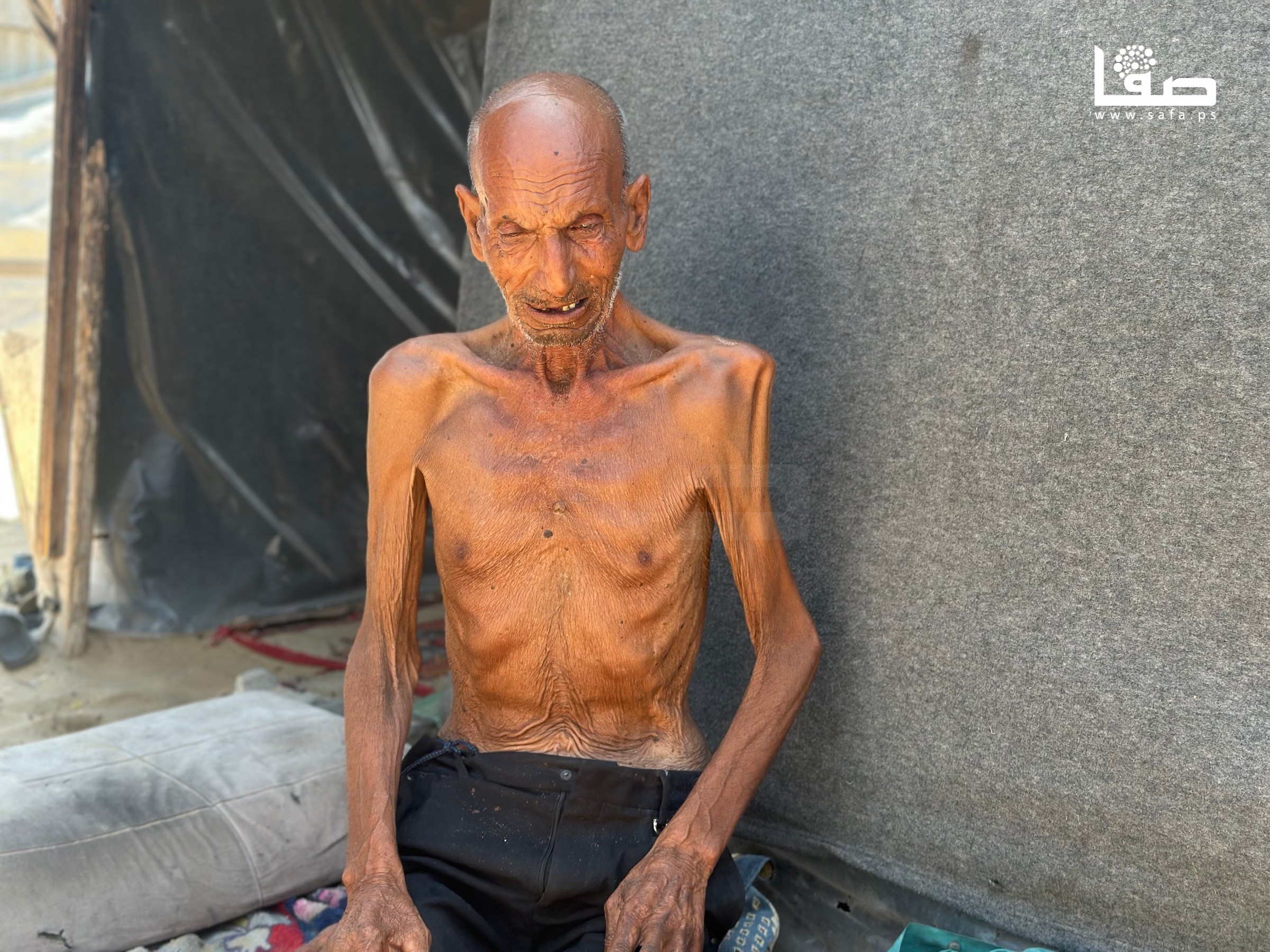 المُسن سليم عصفور نازح في خان يونس يعاني سوء تغذية أفقده أكثر من 40 كيلو من وزنه