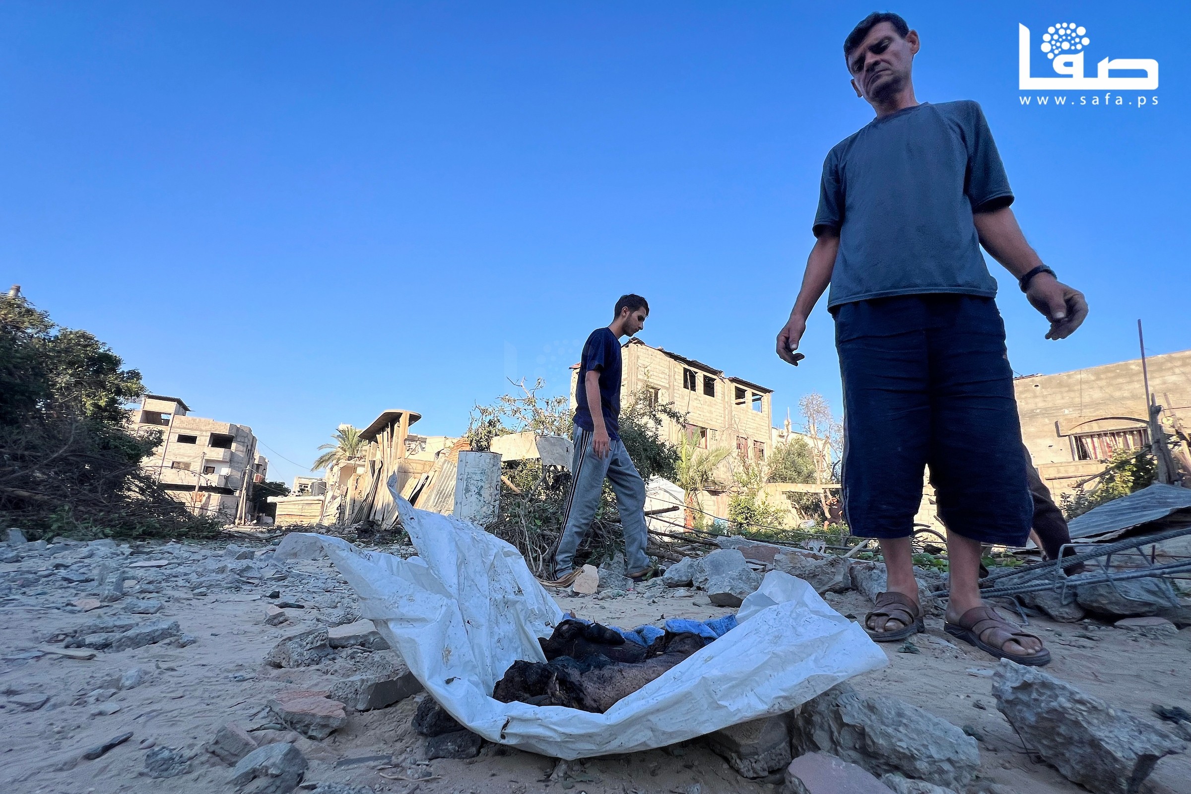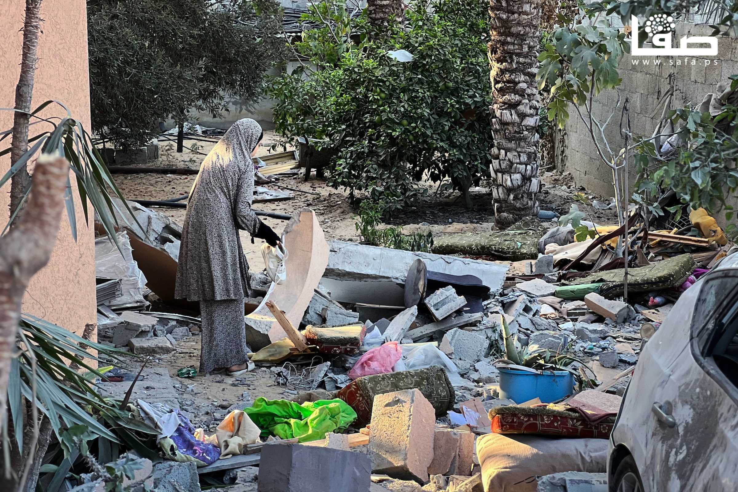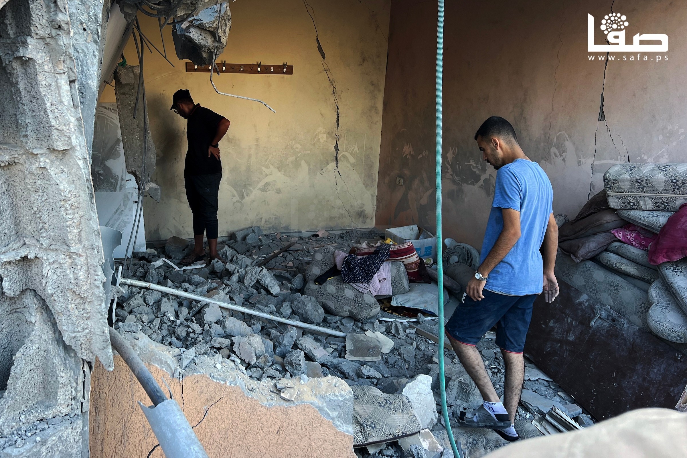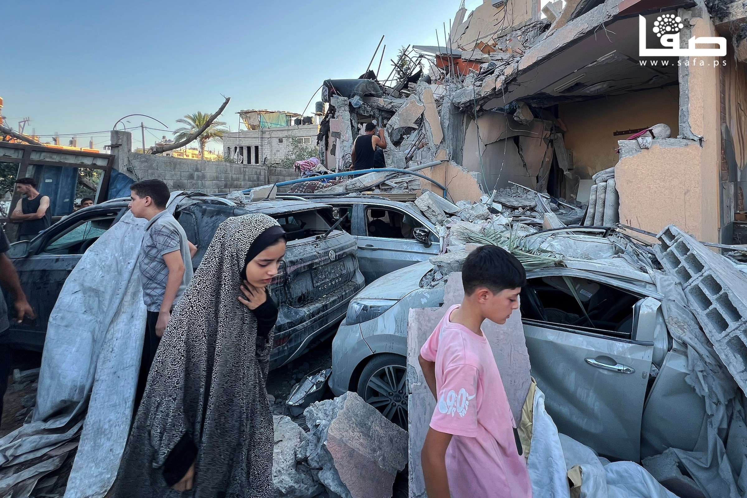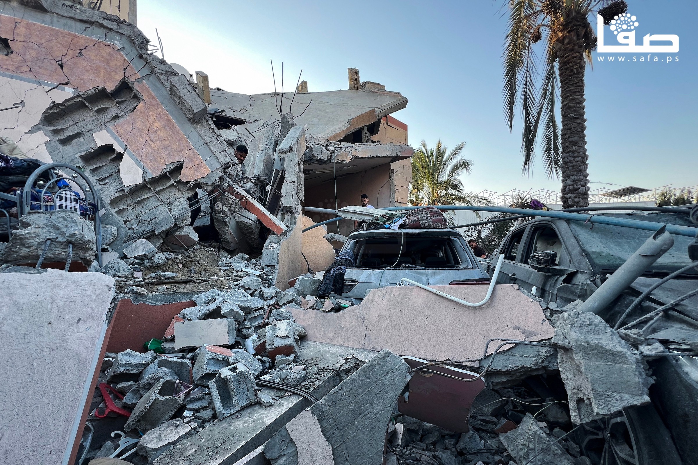 مواطنون يتفقدون منازلهم المدمرة جراء القصف الإسرائيلي على مخيم النصيرات وسط غزة