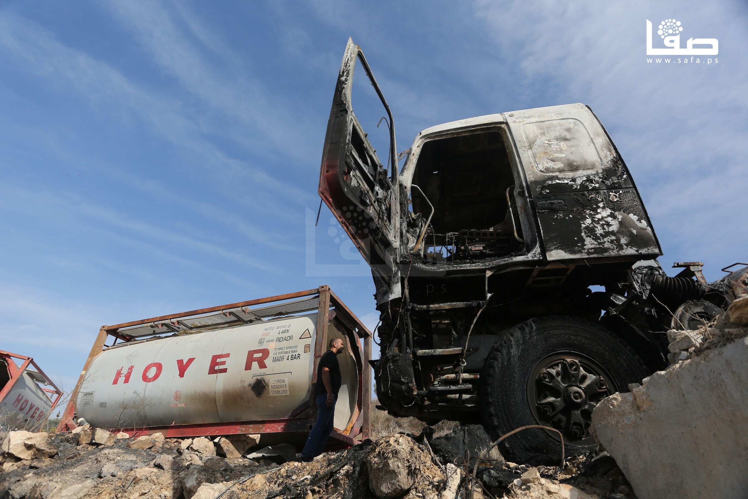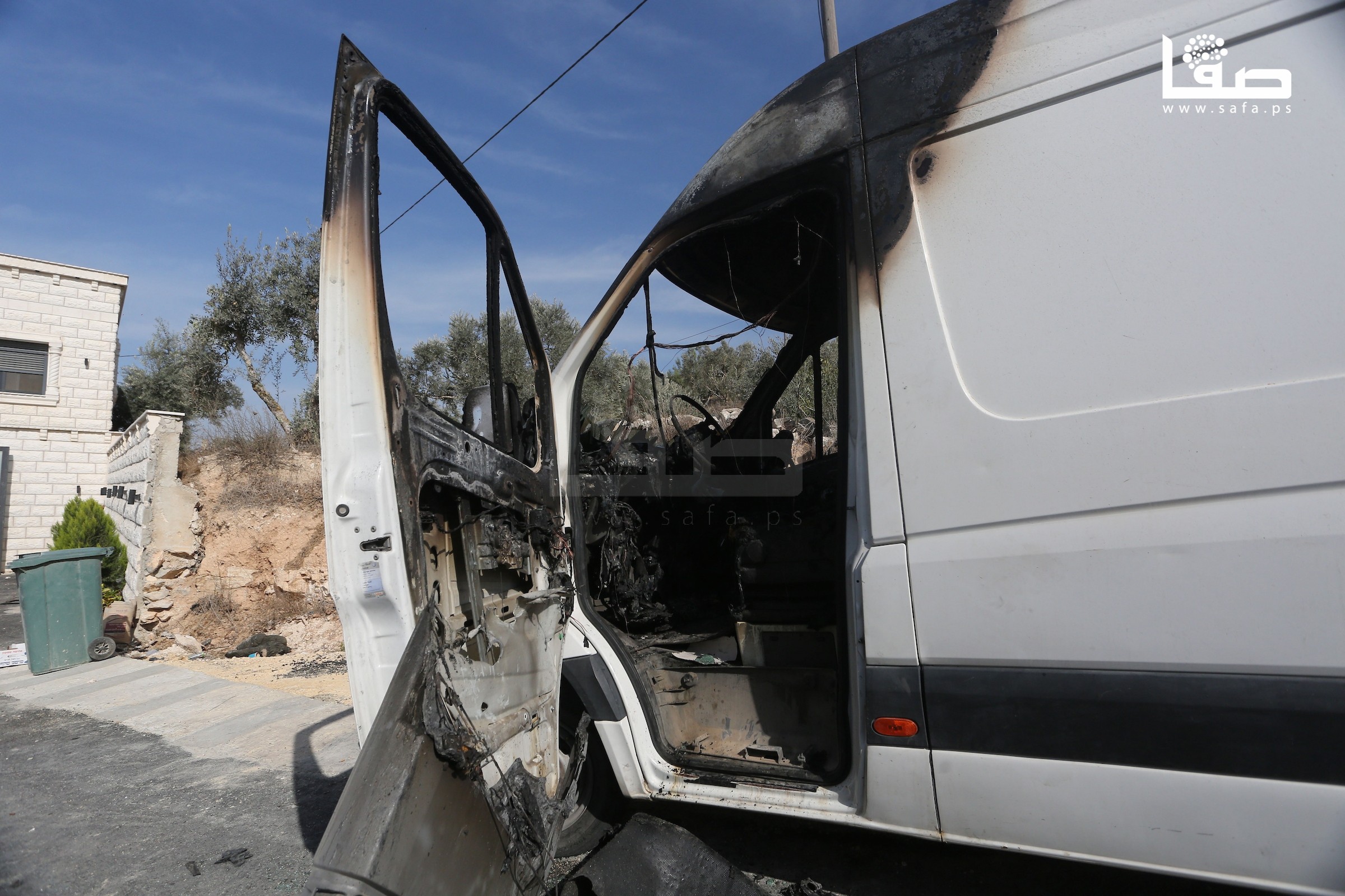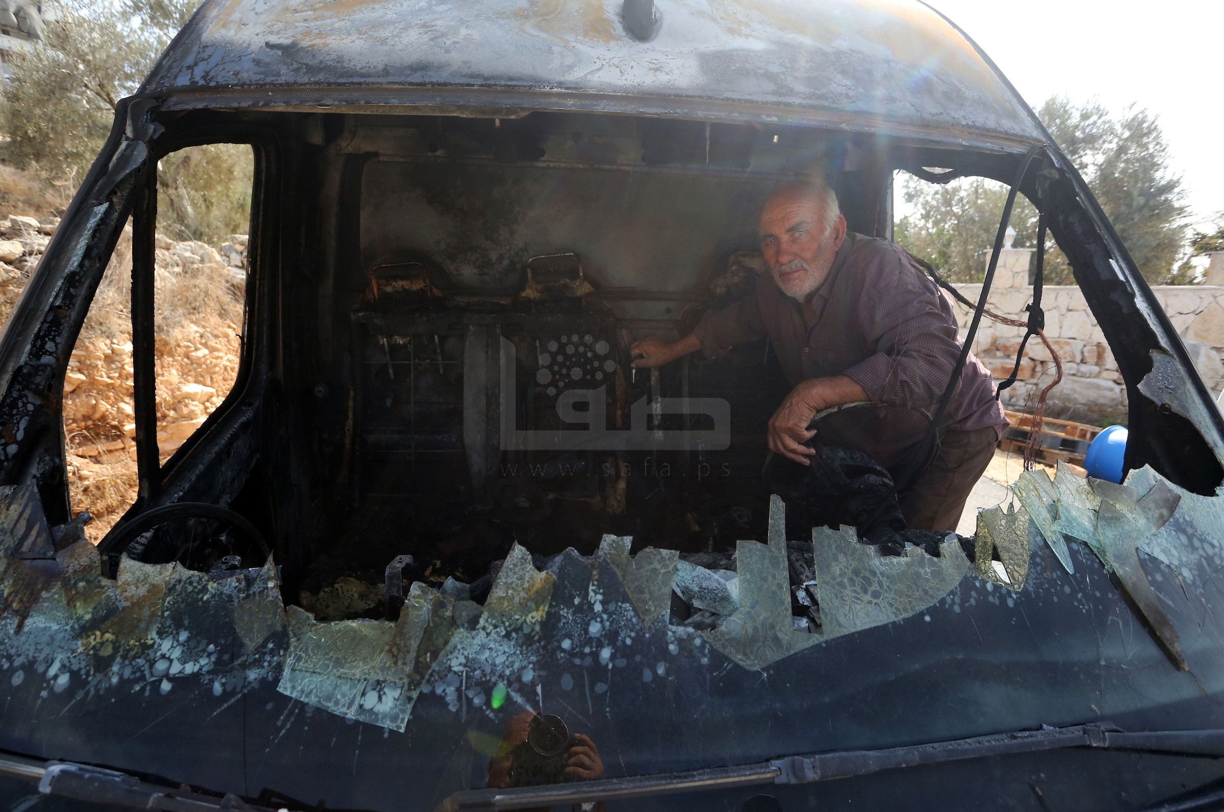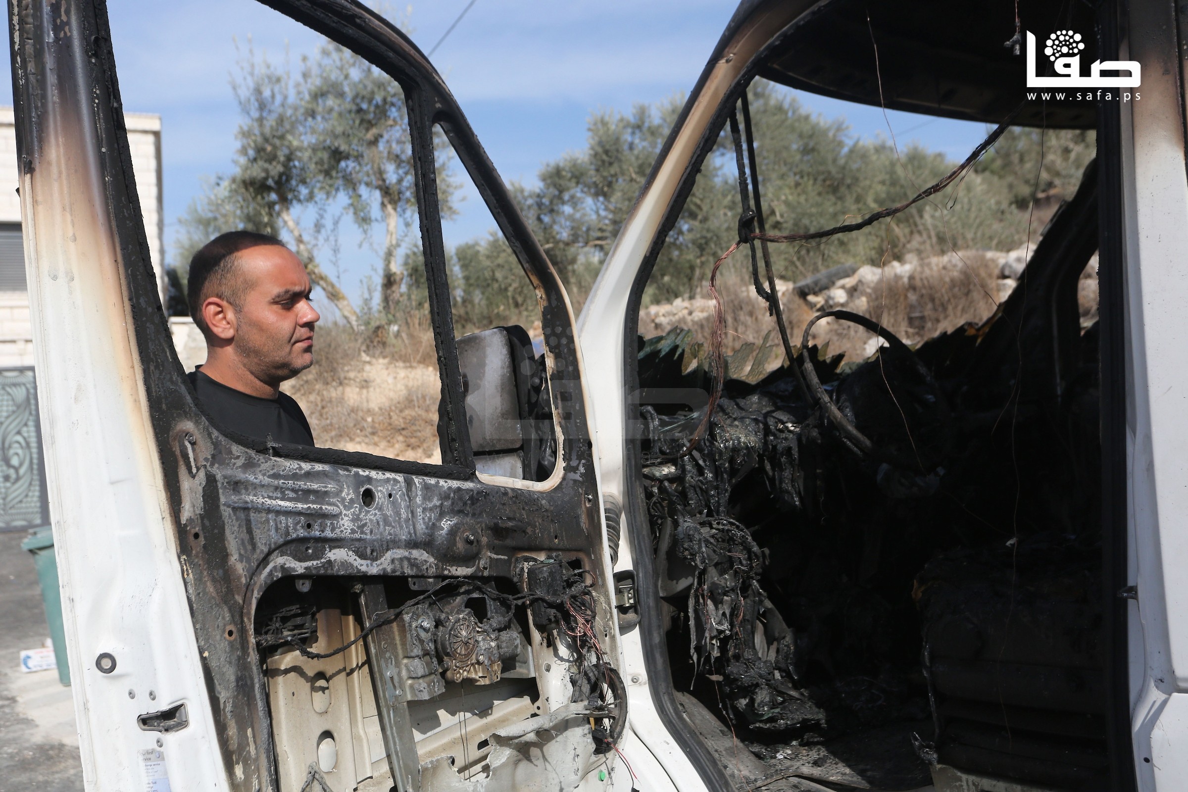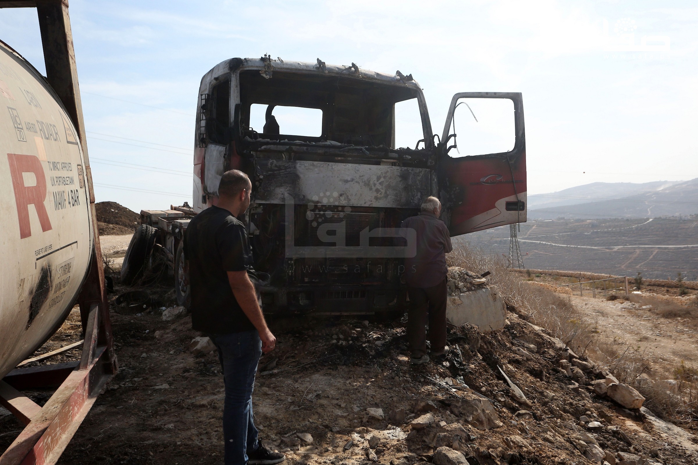 مواطنون يتفقدون مركبات أحرقتها مجموعات من المستوطنين في قرية فرعتا بقلقيلية بالضفة الغربية المحتلة