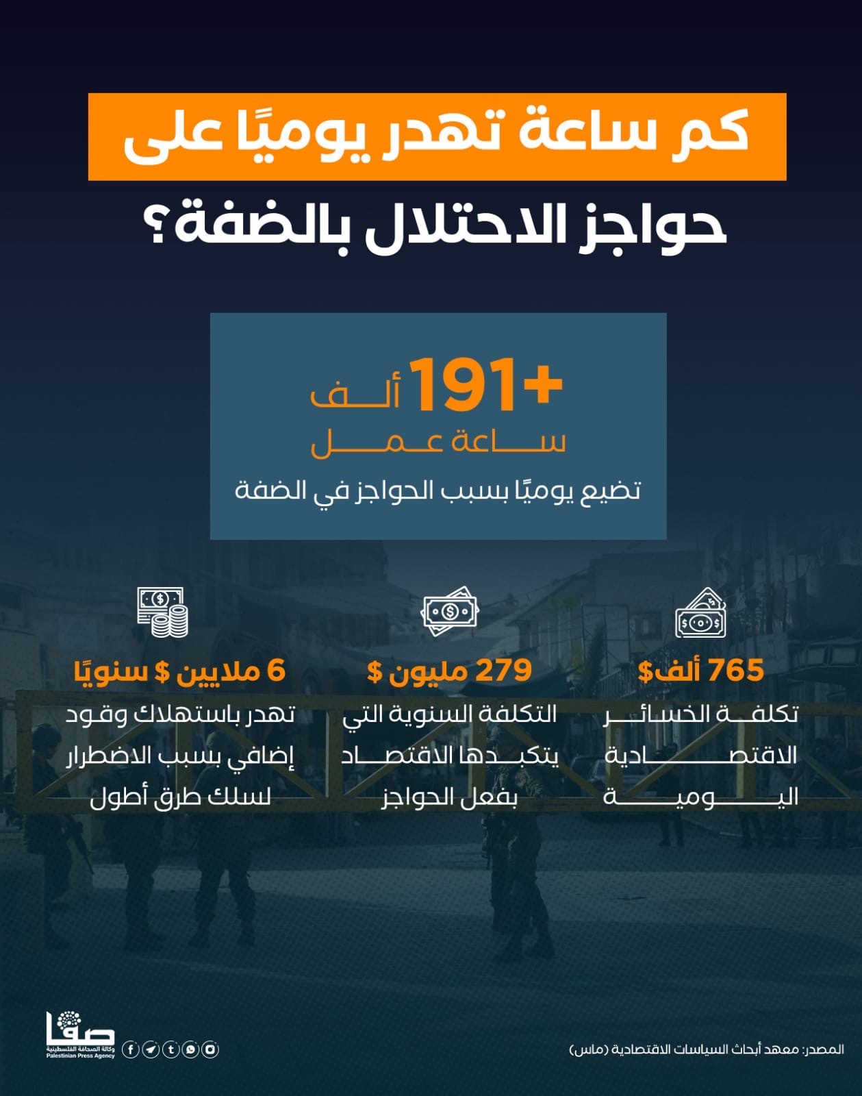 كم ساعة تهدر يوميا على حواجز الاحتلال في الضفة الغربية؟