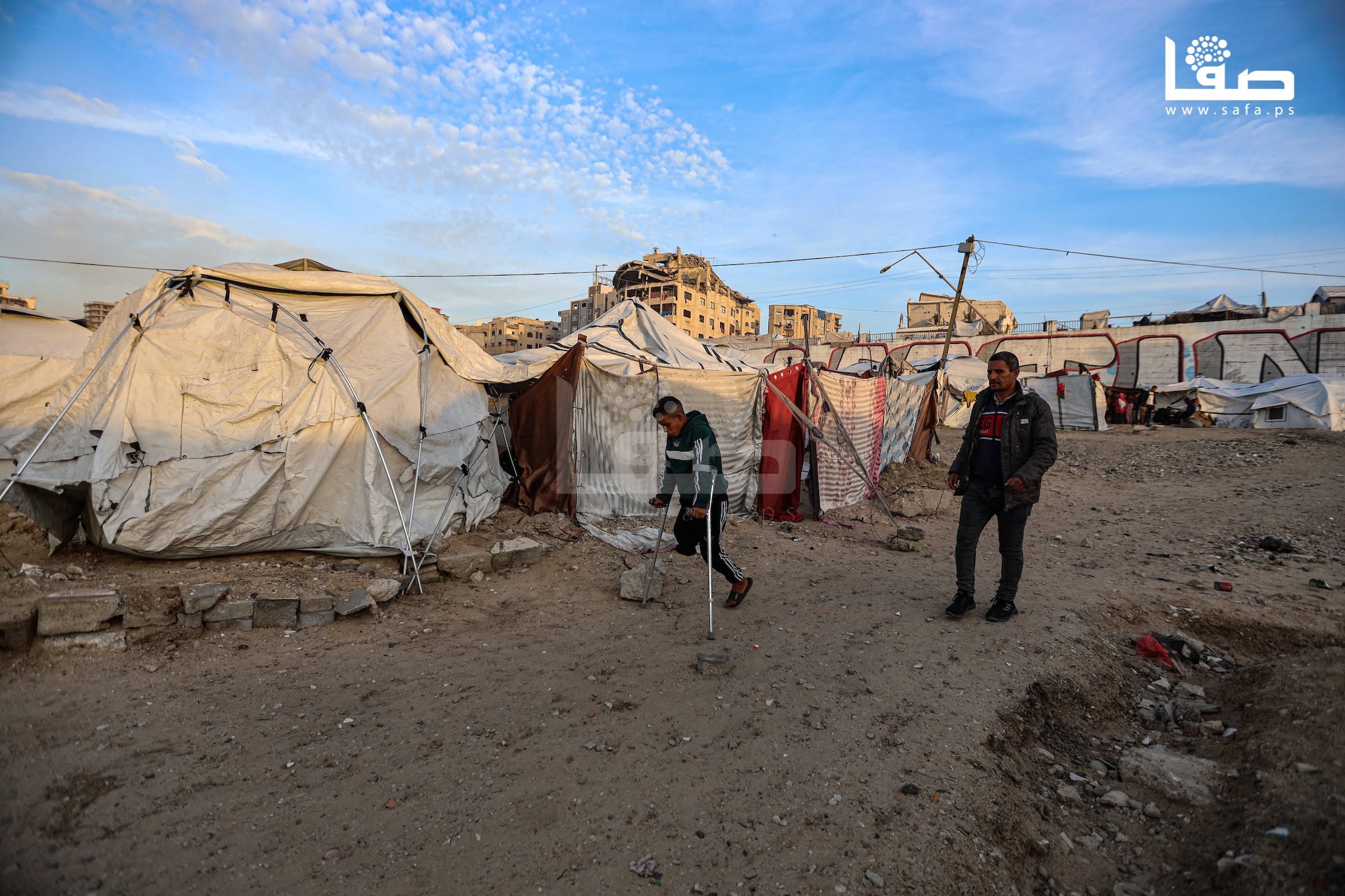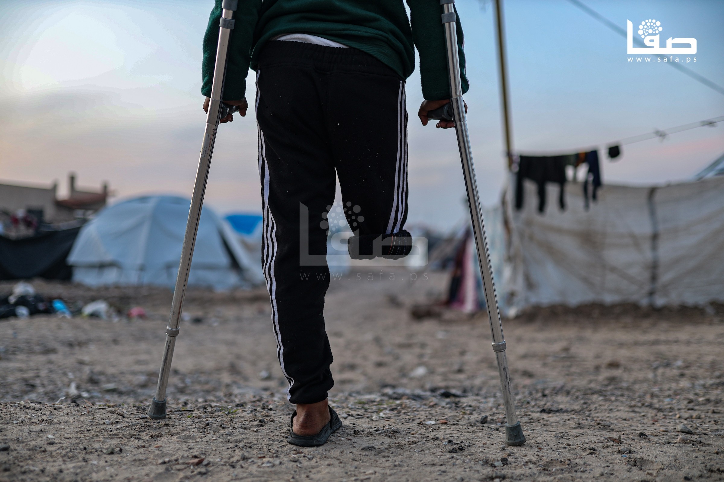 الطفل عمر (13 عامًا) يزور قبر ساقه المبتور خلال قصف إسرائيلي على عزة