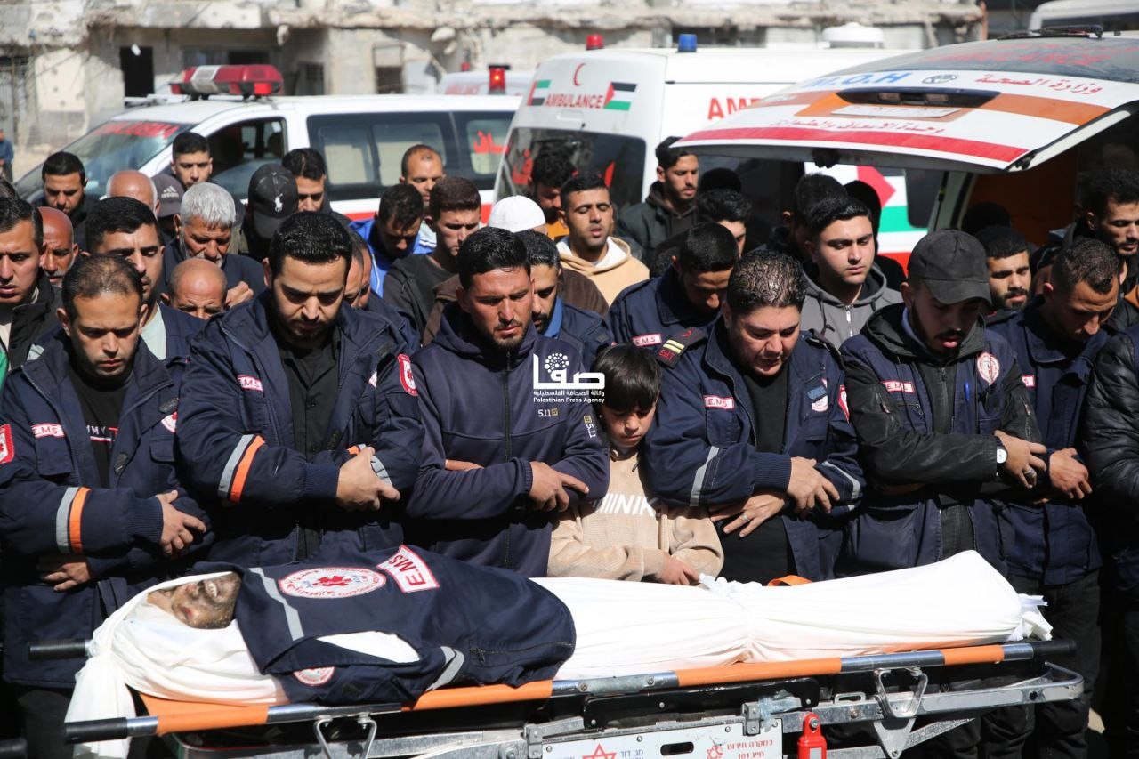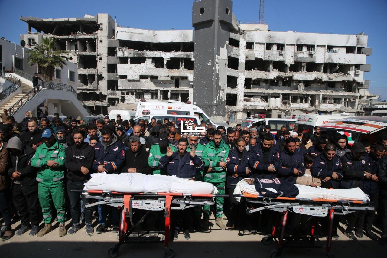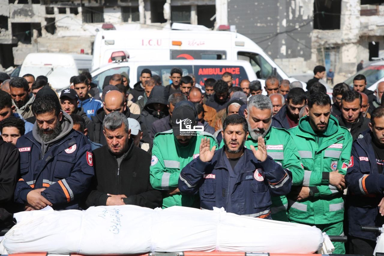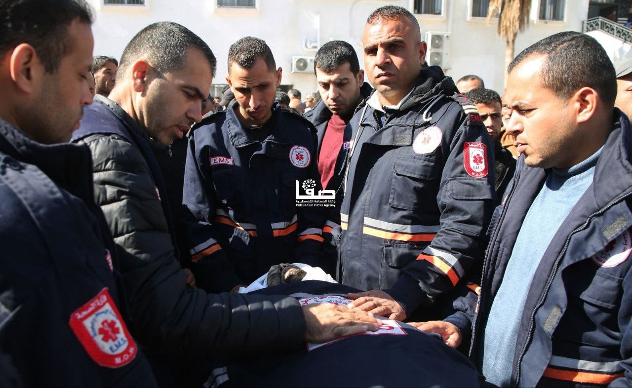 على أكتاف زملائه… تشييع جثمان الشهيد المسعف عبد حسني حمدونة الذي ارتقى جرّاء قصف إسرائيلي غربي مدينة غزة