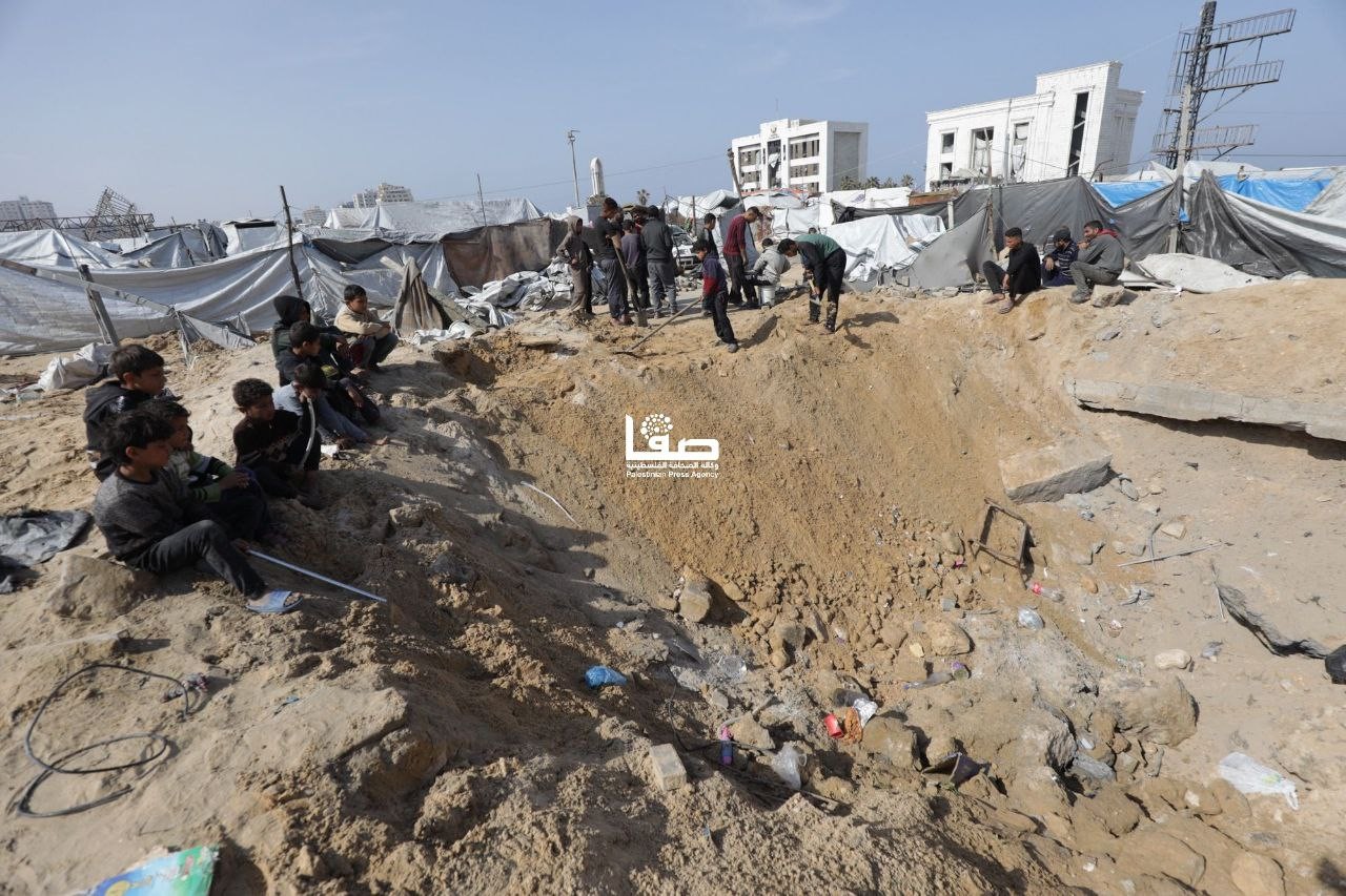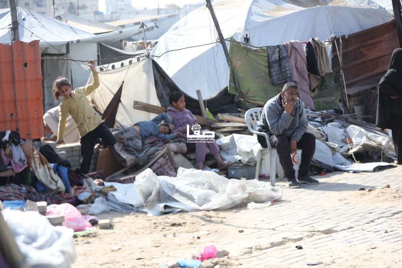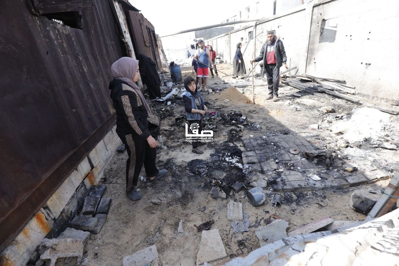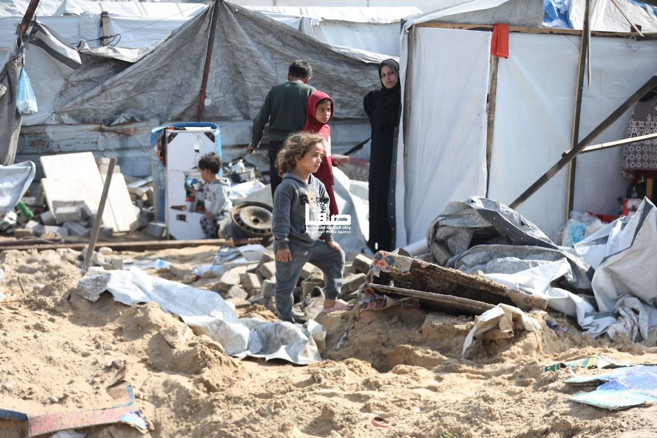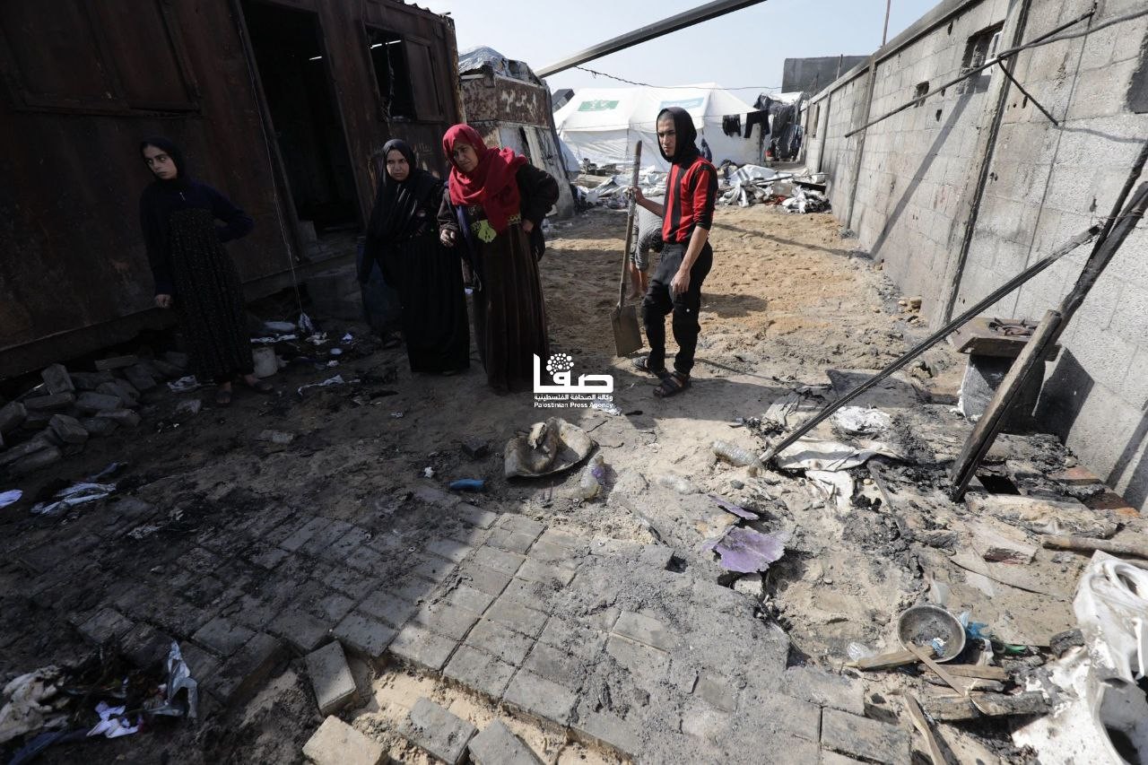 بعد قصف إسرائيلي استهدفه أمس.. نازحون يرمّمون الأضرار التي خلّفها القصف في مخيّم أنصار غربي مدينة غزة