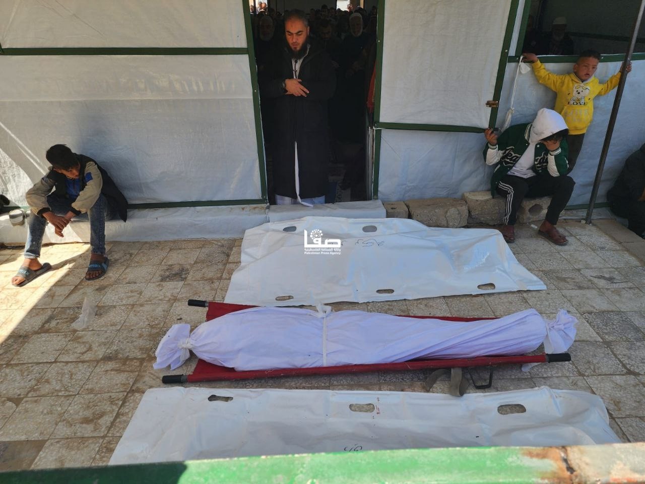 وداع شهداء القصف الإسرائيلي على مركبة في مواصي خانيونس جنوبي قطاع غزة