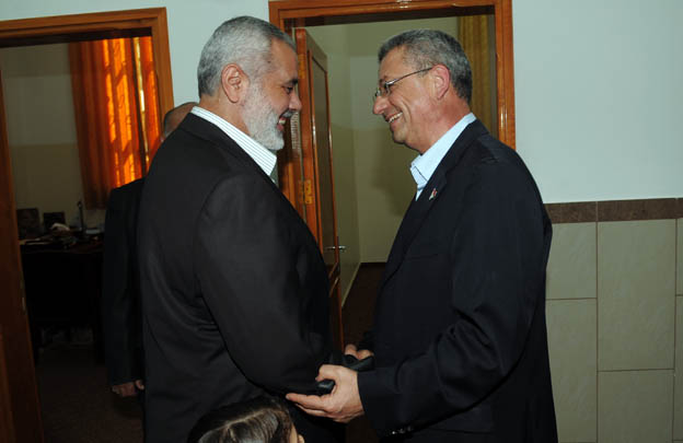 استقبل رئيس الحكومة في غزة إسماعيل هنية، مساء الجمعة، أمين عام حركة المبادرة الوطنية الفلسطينية ومنسق لجنة الحريات في الضفة الغربية مصطفى البرغوثي. وبحث هنية مع البرغوثي عددا من الملفات الداخلية الفلسطينية خاصة فيما يتعلق بملف المصالحة وسبل دفعها. وهنأ هنية البرغوثي بمناسبة ذكرى انطلاقة حركة المبادرة الفلسطينية.