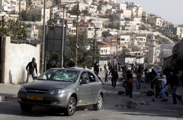 شبان يرشقون سيارة مستوطن