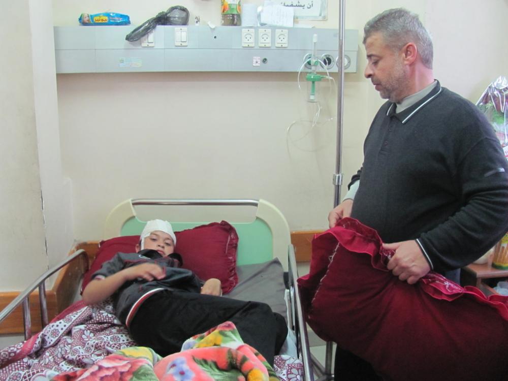بمساعدة والده، استطاع الطفل محمد مدحت حلس (16 عاماً) الوصول إلى شرفة إحدى غرف مستشفى الشفاء بمدينة غزة والتي يرقد داخلها منذ أكثر من أسبوعين، لكنه لم يستطع الوقوف نتيجة الإصابة التي أثرت كثيراً على أعصابه وحركته. ويعاني محمد الذي بدت لغته العربية غير جيدة من قلة النوم بسبب "الأحلام المزعجة" التي تتردد عليه كلما استسلم للنعاس، بسبب تهشم في بعض عظام الجمجمة، وتعطلت الكثير من خلايا الاعصاب إثر إصابته بقنبلة غازية التصقت برأسه، خلال مشاركته في الاحتجاجات الأسبوعية ضد الحصار والمنطقة العازلة شرق مدينة غزة. وهذه الإصابة هي الثانية لمحمد، حيث أصيب في وقت سابق أمام معبر ناحل عوز في قدمه، لكن سرعان ما شارك من جديد، ولم يكن يعلم أن مشاركته الثانية سوف تقلب حياته رأساً على عقب، خاصة أنه المعيل لعائلته بعد مرض والده. وكان محمد ترك المدرسة بعد ان اجتاز الاعدادية بنجاح، ليفتح مشروعه الخاص ببيع " الأحذية " بمنطقة الرمال الشمالي وسط غزة ليعتاش منها ويساعد والده المصاب بالغضروف. [title]الحادثة [/title] يقول والده: محمد كان متحمساً جداً للمشاركة في الاحتجاجات الأسبوعية، وكان دائم السؤال عن أوقات وأماكن التجمع، فاستغل إجازته الأسبوعية يوم الجمعة بعد أن تأكد من وجود فعالية من أصدقائه اللذين يشاركونه نفس الافكار والعقائد بأن الأقصى يجب أن يتحرر من دنس الاحتلال وذهب إلى منطقة المقبرة الشرقية شرق جباليا". وبدأ الوالد ينقل عن أصدقائه وشهود العيان أن الاحتلال بدأ بإطلاق قذائف الغاز السام على المشاركين كلما اقتربوا من الحدود ومعهم محمد الحامل بيده بعض الحجارة ليرشقها على الجنود المترجلين من جيباتهم العسكرية، حتى استهدفوا محمد بقنبلة غاز بشكل مباشر استقرت في رأسه. التصقت قنبلة الغاز بجمجمة الطفل البالغ من العمر 16 عاماً، وجرى نقله على وجه السرعة لمشفى الشفاء. [img=032014/re_1393836867.jpg]الطفل محمد مع والده[/img] ويبكي محمد وهو يستمع لحديث والده، ويقول بصوت متقطع لوكالة "صفا" " ما تعرضت إليه بعد الاصابة من ألم شديد في الرأس فداء للقدس والمقدسات وما بيننا وبين الاحتلال لم ينته بعد". ويؤكد محمد بأن ما يحدث على حدود قطاع غزة يرعب الاحتلال الاسرائيلي وجيشة المحصن والمسلح، بالرغم من أننا غير مسلحين سوى بالحجارة وبعض زجاجات "المولوتوف". ويعتبر مدحت حلس والد محمد بأن ما قدمه الاطباء من أجل إبقائه على قيد الحياة شيء كبير جداً ويكسر أنف الاحتلال الذي حاول إسكات صوت الطفل. ويؤكد أن ما حدث لمحمد لن يكسر إرادته ومعنوياته، بل سيزيده قوة وإراده حتى تحرير الأقصى وعودة اللاجئين. [title]العناية المركزية[/title] من جهته، قال الطبيب أشرف بركات أخصائي جراحة المخ والأعصاب والمشرف على علاجه إنه تم التعامل مع حالة الطفل بصورة عاجلة جداً بعد عمل الإسعافات الأولية وصورة مقطعية للدماغ، مشيراً إلى أنه منذ لحظة قدومه أجري له عملية جراحية تم خلالها رفع القنبلة الملتصقة بالرأس ورفع العظام المتكسرة من أجل توقيف النزيف. وشدد على أن المريض يعاني من حالات التعصب والتهيج نتيجة الرضوض ومكان القنبلة الغازيه، لافتاً إلى أن الطفل مكث ليلة واحدة في العناية المركزية وبعد ذلك تم تحويله إلى المتابعة لقسم المخ والاعصاب. وأكد أن المراحل التي يمر بها الطفل من أحلام وهميه واستمرار في البكاء والعصبية طبيعية جداً وهي مراحل لابد منها جراء الإصابة. وطالب بركات الأهل والأصدقاء بمزيد من العلاقات الإجتماعية والنفسية لمساندته على نسيان الحادث ودعمه في مواصلة طريقه حتى يعود أفضل من السابق.