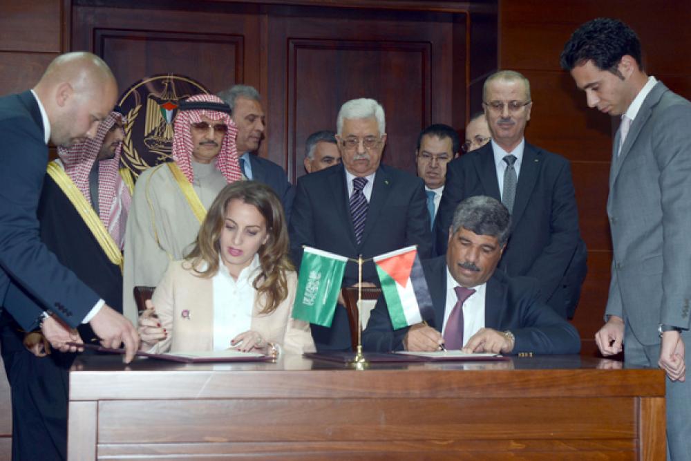 قدم الأمير السعودي الوليد بن طلال بن عبد العزيز آل سعود، خلال زيارته رام الله الثلاثاء، دعمًا ماليًا بقيمة ٤ مليون و١٠٠ ألف دولار أمريكي لصالح مشاريع زراعية. وجرى توقيع اتفاقية بالمبلغ المذكور بين مؤسسة الأمير الوليد الخيرية ووزارة الزراعة في حكومة رام الله، نصت على دعم برنامج مكافحة الفقر لإقامة مشاريع زراعية صغيرة مدرة للدخل. واستقبل الرئيس محمود عباس الأمير الوليد في مقر الرئاسة برام الله وقلده وسام نجمة الشرف من الدرجة العليا "تقديرا لإسهاماته النبيلة والسخية في دعم صمود شعبنا وثباته على ترابه الوطني، وتثمينا لدوره في دعم الاقتصاد الفلسطيني ودفع عجلة التنمية في المنطقة". وثمن عباس في مؤتمر صحفي مع الأمير الوليد عقب اجتماعهما زيارة الأمير السعودي إلى الضفة الغربية، معلنا أنه وعد بتقديم كافة أنواع الدعم للسلطة الفلسطينية. بدوره، قال الأمير الوليد إن زيارته إلى رام الله "لتأكيد التعاون والتحالف الاستراتيجي مع دولة فلسطين في النطاق الاستثماري والإنساني". وأبدى الأمير السعودي استعداده لدعم فلسطين في أي توجه من شأنه تقريب إقامة الدولة الفلسطينية المستقلة في الضفة الغربية وقطاع غزة. وعلى هامش زيارته التي تعد الأولى إلى الضفة الغربية، اجتمع الأمير السعودي مع رجال أعمال لبحث دعم مشاريع تنموية. وكان الملياردير العربي وصل رام الله عبر مروحية أردنية، وهو سبق أن زار قطاع غزة في مناسبتين عام 2000 ويستثمر في عدة مشاريع دعم في الضفة والقطاع.